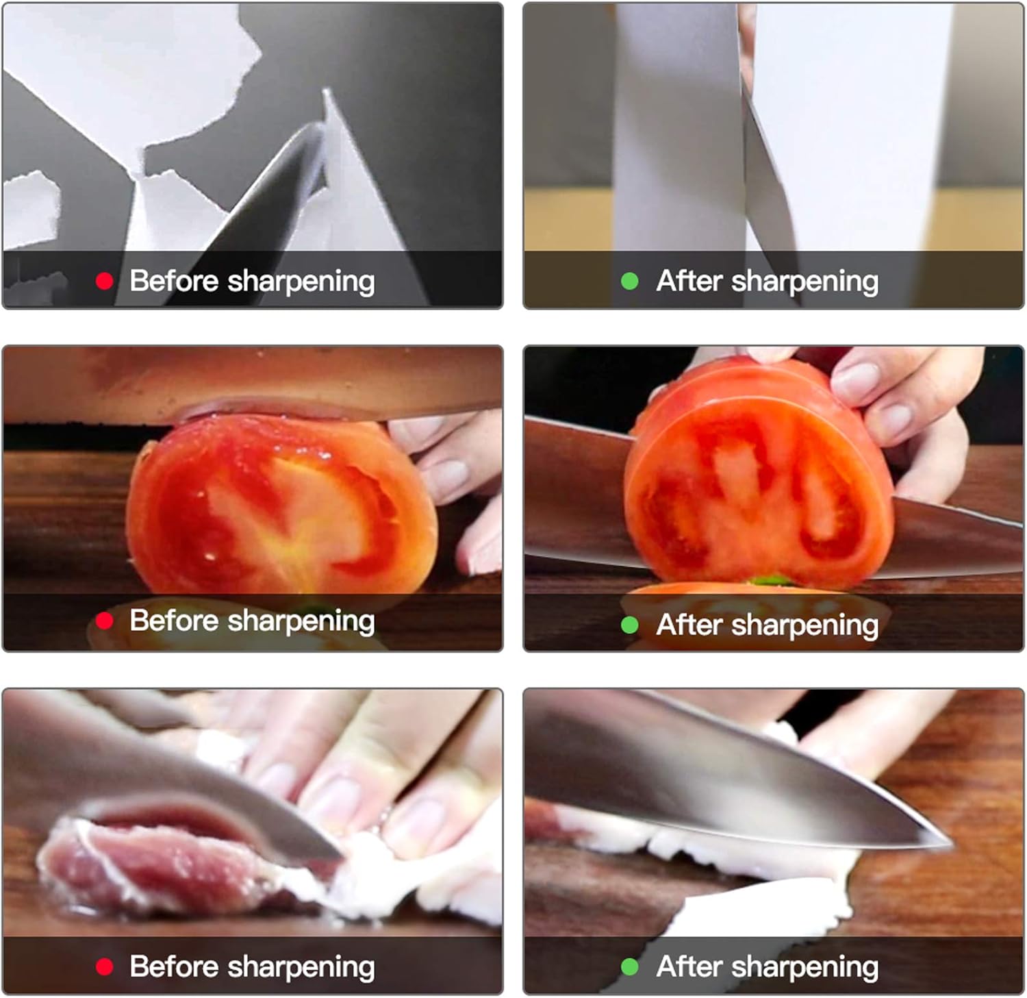 - EINFACHE HANDHABUNG - Im Vergleich zu Arkansas-Steinen oder Slipstone-Schleifern muss unser Whetstone Set nur 10 Minuten in Wasser eingeweicht werden und benötigt kein teures Schärföl! Experimente belegen, dass Wasser besser funktioniert und die Reinigung erleichtert! Wenn Sie Ihr Messer mit unser Messerschärfer schleifen, werden Sie in kurzer Zeit ein professioneller Schärfmeister!