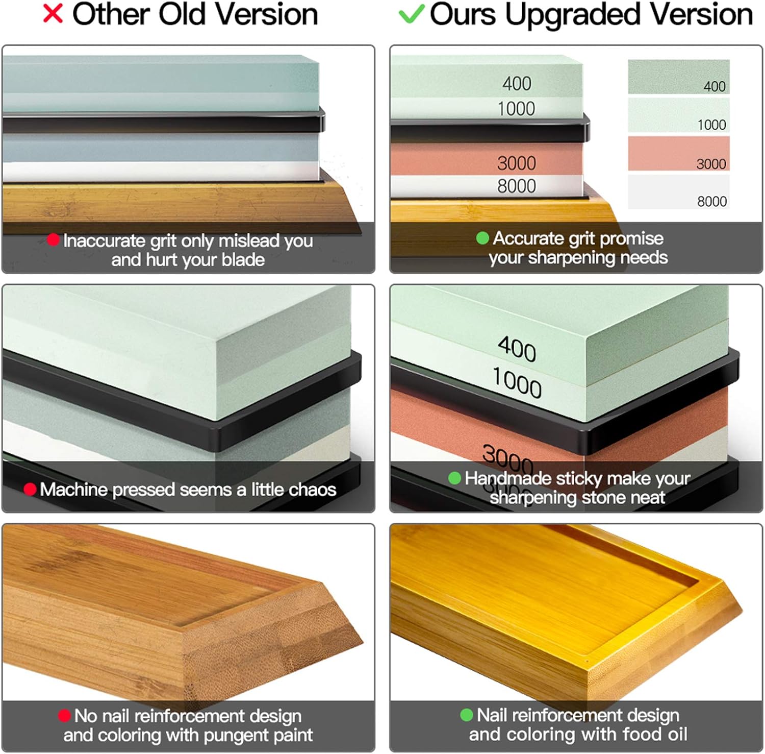 - 400/1000 3000/8000 SCHLEIFSTEIN IST GEEINGNET FÜR MEISTE SCHLEIFOPERATIONEN - Die 4 Art von Körnung ist sehr genau, Es eignet teures oder billiges Küchenmesser aus Edelstahl, einschliesslich Schere, X-Acto-Klingen, Taschenmesser, Jagdmesser, Meissel, Axt, Rasiermesser, Schwert oder sogar Machete. Das Sharpening Stone Set kann es wie neu schärfen.