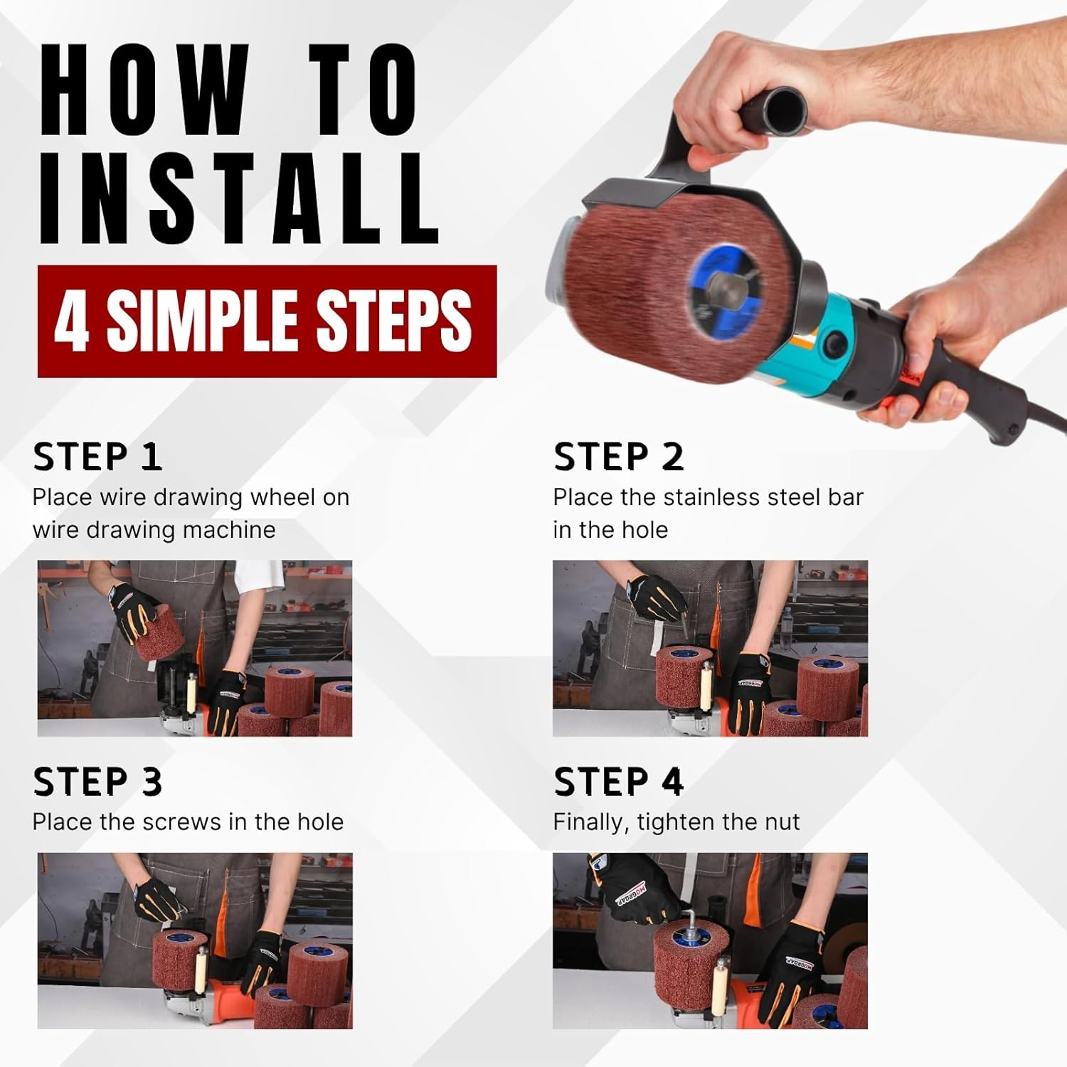 - GUTE LEISTUNG: Schleifwalze kann die Metalloberfläche polieren und verdrahten, und die Textur ist gleichmässig und glatt. Während des Gebrauchs wird Hitze nicht schwärzen, verfärben oder Rückstände auf der Oberfläche hinterlassen. Kann verwendet