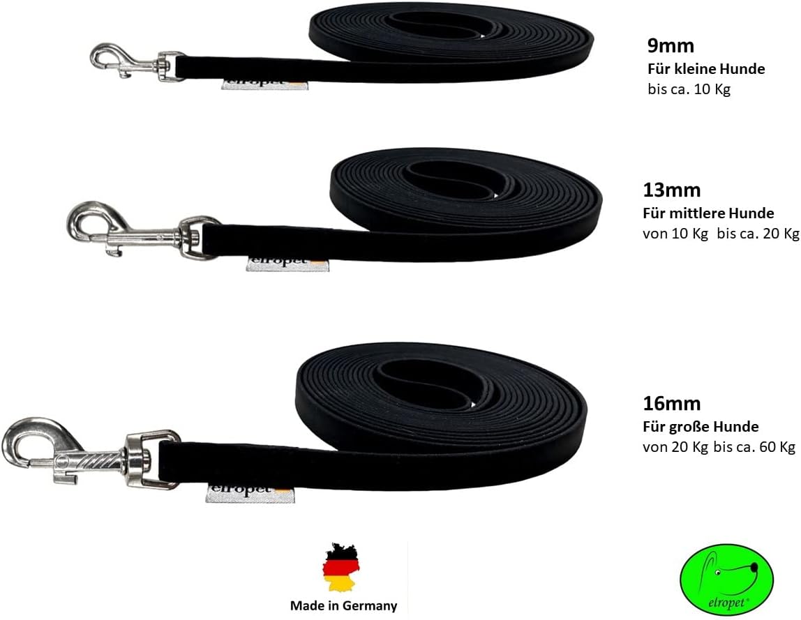 - Ein Qualitätsprodukt der Marke Elropet. Wir verarbeiten dieses hochwertige Material in unserer eigenen Produktionsstätte in Deutschland. Um Ihnen eine optimale Reissfestigkeit anbieten zu können vernähen wir die Biothane Leine mit einer speziellen