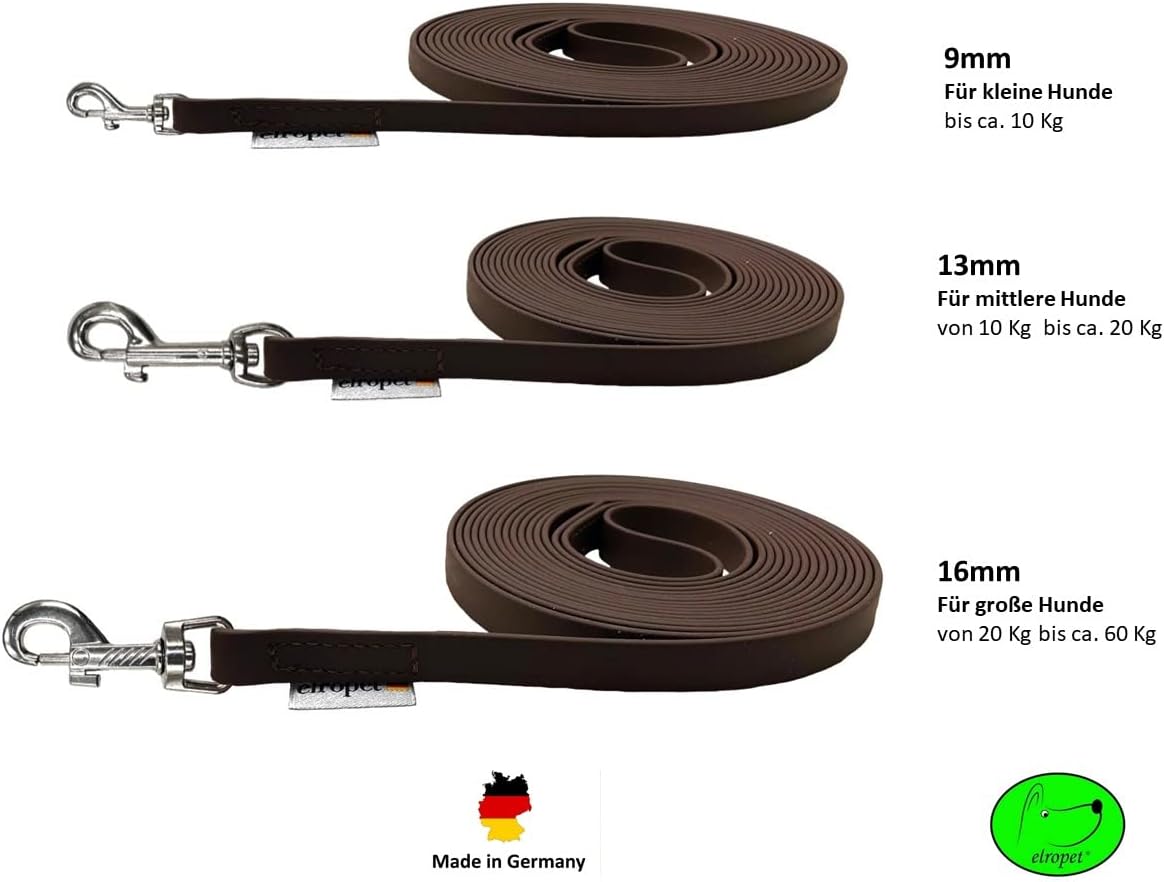 - Ein Qualitätsprodukt der Marke Elropet. Wir verarbeiten dieses hochwertige Material in unserer eigenen Produktionsstätte in Deutschland. Um Ihnen eine optimale Reissfestigkeit anbieten zu können vernähen wir die Biothane Leine mit einer speziellen