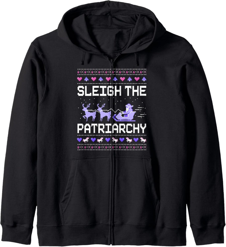 PRODUKTBESCHREIBUNGEN Sleigh The Patriarchy Funny Ugly Christmas Sweater with Santa Unicorn Tolles feministisches Meme für Weihnachten an alle Feministinnen, die den Weihnachtsmann lieben, sich um die Gleichstellung der Geschlechter kümmern und das Patriarchat abschaffen wollen. Wenn Sie leidenschaftlich über die Rechte der Frauen, gleiche Bezahlung, Feminismus sind, ist dieser Spass Design für Männer Frauen für Geburtstag, Weihnachten gross. Zeigen Sie Ihre Unterstützung für Frauen, Gleichheit, Feminismus, Pro-Choice-Bewegung.