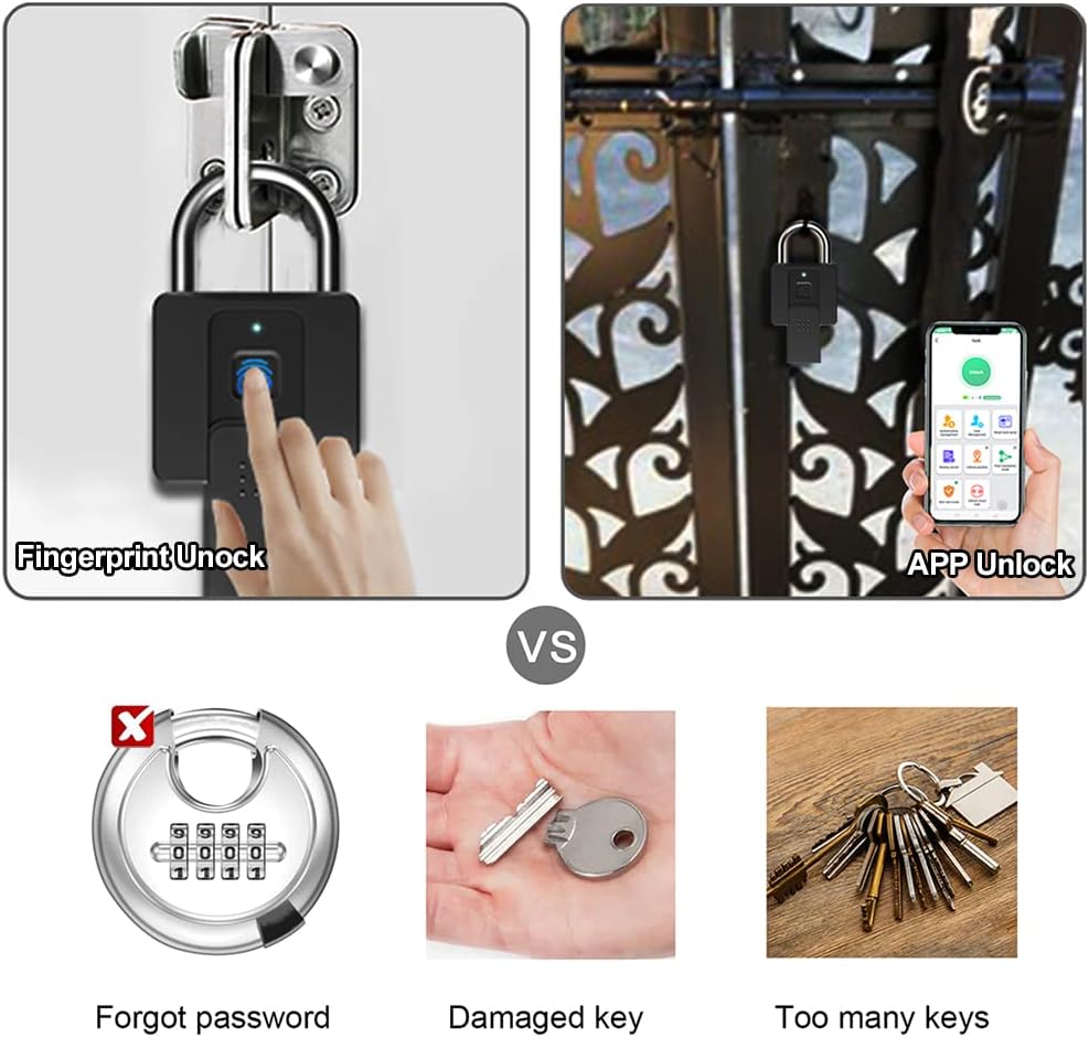 - 🔐【Fingerabdruckschloss mit Schlüsseln】Ihr Finger ist der Schlüssel. Keine Sorge, den Schlüssel zu verlieren. Diebstahlsicher, nicht kopierbare Schlüssel. Fingerabdruckfunktion für 2 Administratoren und 18 normale Benutzer, Entsperrung in 0,5