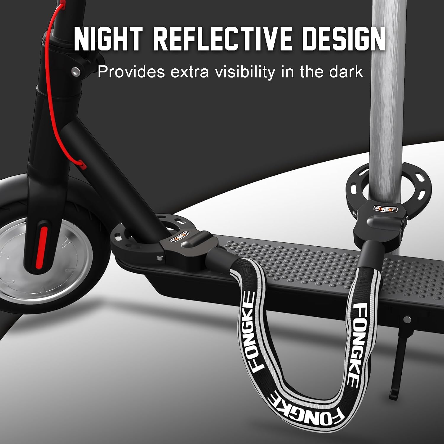 • Anti-Kratz-Design: Weiches Silikon um die Manschette des Schlosses,das wirksam gegen Korrosion ist, die Handschellen vor Rost und Kratzern schützt und Kratzer auf dem Elektroroller verhindert. Sie müssen sich keine Sorgen machen, dass das