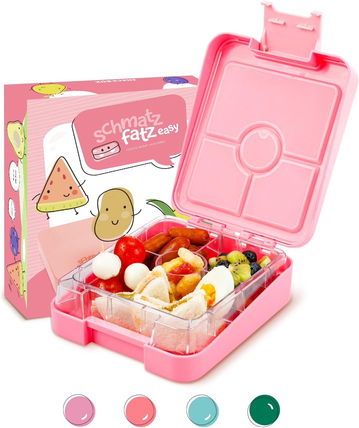 - đ„Š SICHER & GESUND - Die schmatzfatz easy Brotdose Kinder mit FĂ€chern ist natĂŒrlich frei von Schadstoffen wie BPA und Weichmachern (von unabhĂ€ngigen Laboren getestet). Die Einzelteile bestehen aus folgenden Materialien: AussenhĂŒlle = ABS |