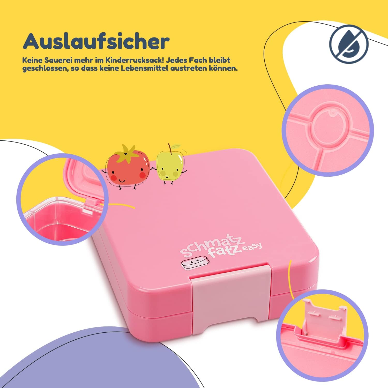 - đ KINDERFREUNDLICH & SAUBERE TRENNUNG - Unsere schmatzfatz easy Brotdose mit FĂ€chern lĂ€sst sich durch nur einen Verschluss Kinderleicht auch von den kleinsten öffnen und schliessen. Die einzelnen FĂ€cher werden sauber gegeneiander abgetrennt damit