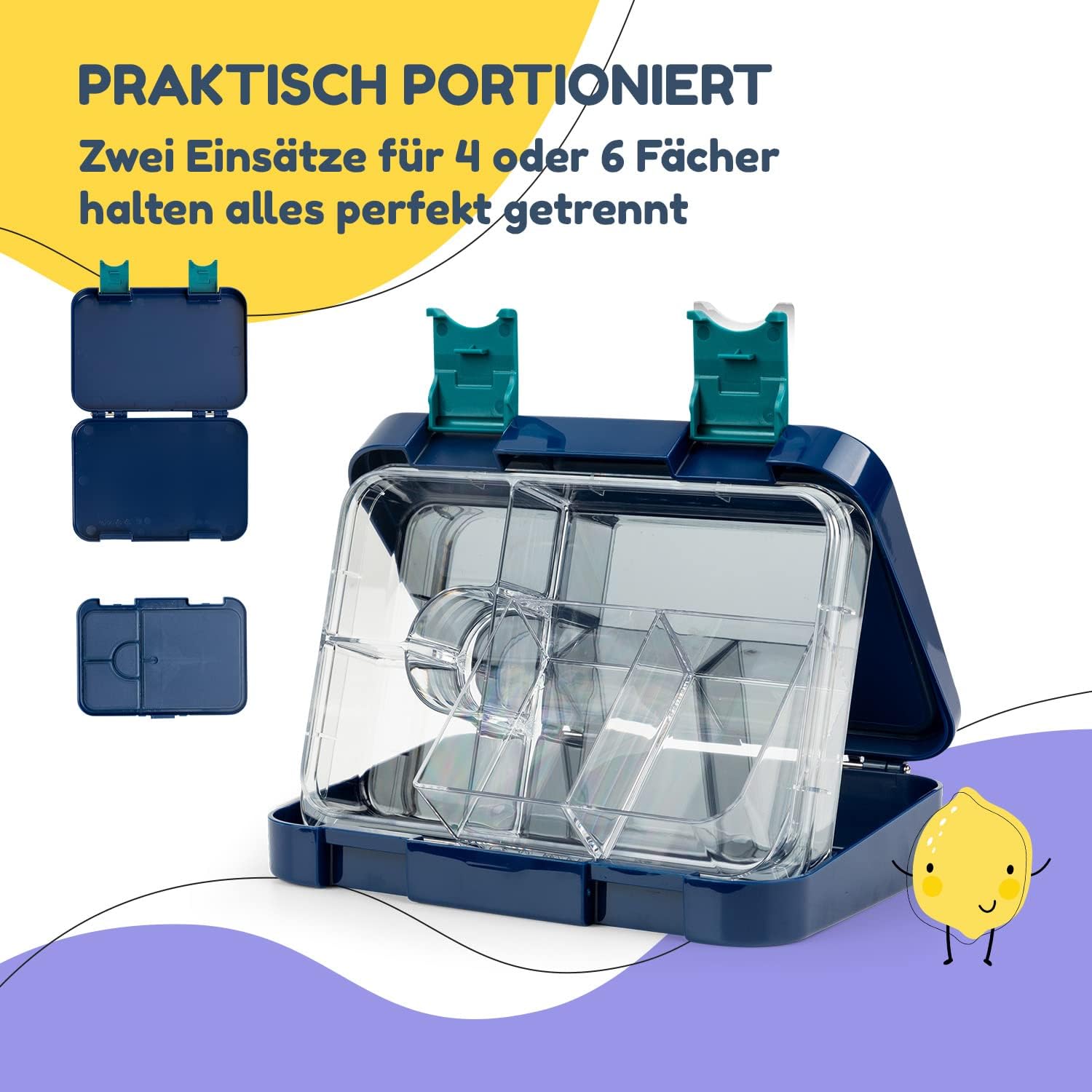 - 🍇 PERFEKT PORTIONIERT: Unsere Lunchbox mit Fächern ist die ultimative Lösung, um das tägliche Pausenbrot einzupacken. Mit 2 herausnehmbaren Innenbehältern mit 4-6 Fächern kannst du ganz einfach eine Vielzahl von Snacks und Lebensmitteln einpacken.