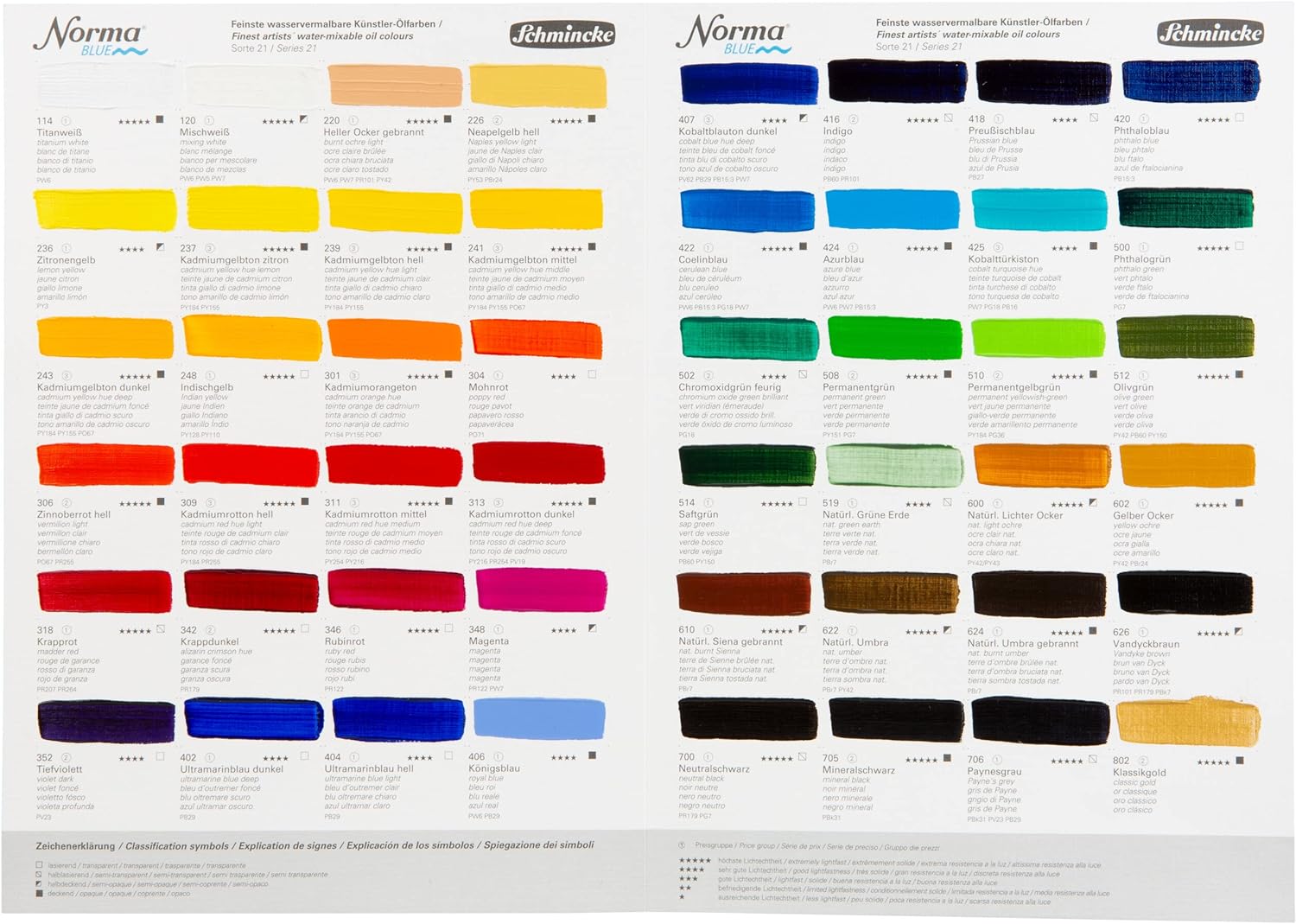 - 🎨 DIE MARKE: Schmincke stellt seit 1881 beste, feinste Künstlerfarben Made in Germany her, die in über 60 Ländern erhältlich sind. Das Sortiment beinhaltet Aquarellfarben, Acrylfarben, Ölfarben, Pastelle, Gouachefarben, Airbrushfarben und