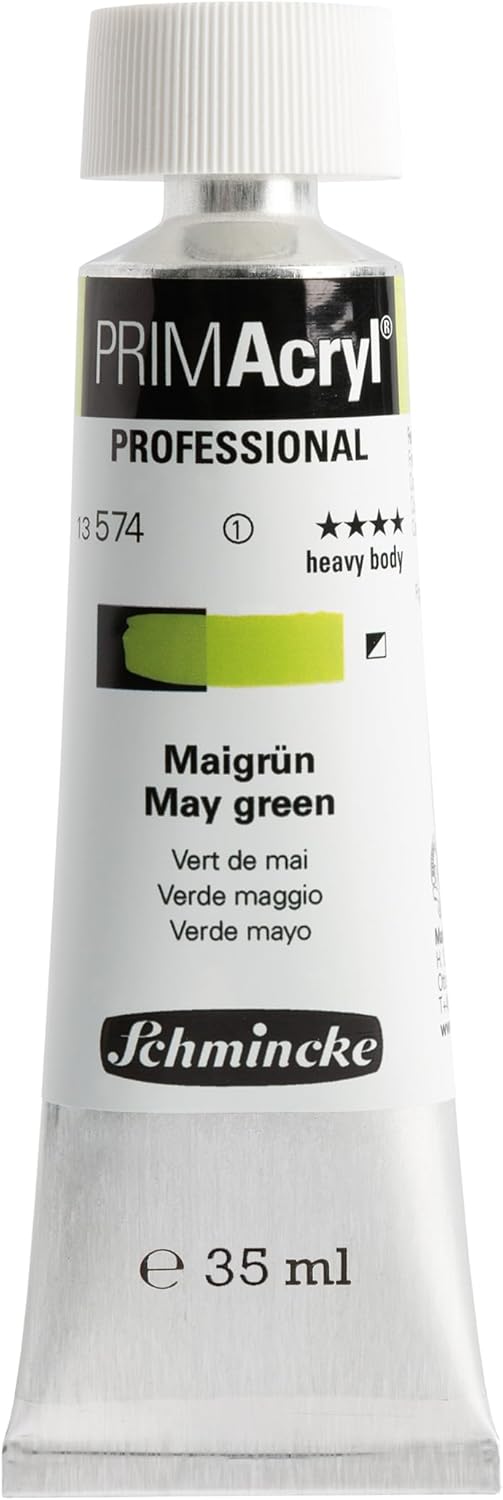 - Farbtöne: Maigrün, Pyrrol Rot, und Kadmiumgelbton mittel in 35 ml Tuben