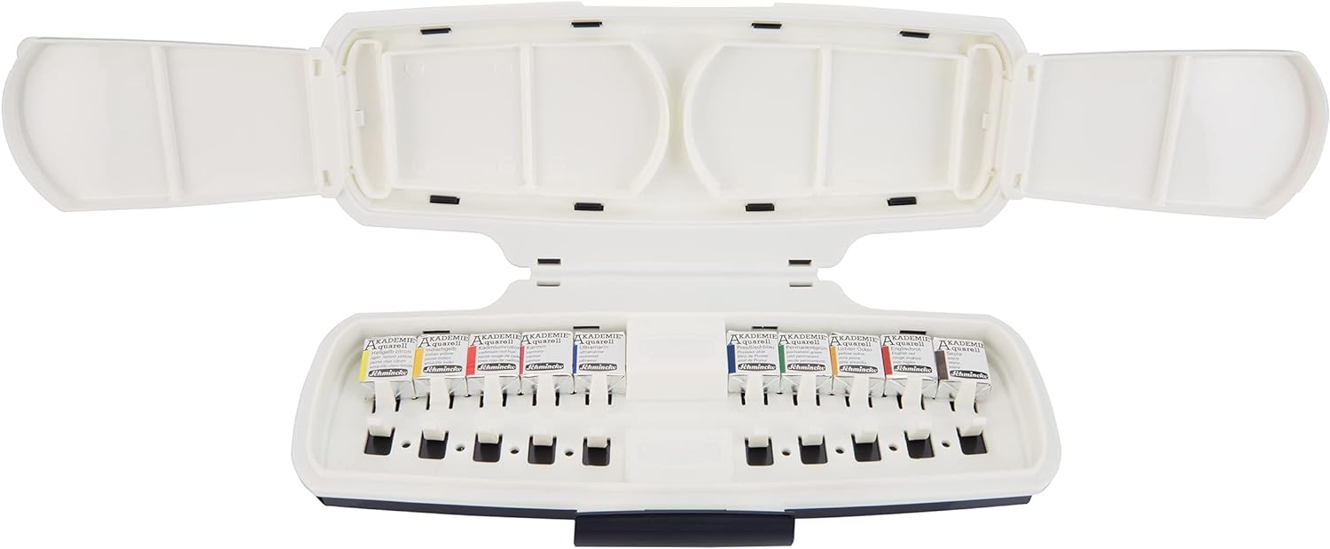 - 🎨 AKADEMIE AQUARELL: Stabiler Kunststoffkasten, Grundsortiment mit 10 halben Näpfchen feiner Künstler-Aquarellfarbe und Platz für 10 weitere halbe Näpfchen (L x B x H 23,6 x 9,5 x 3,4 cm). Mit ausklappbaren Mischpaletten ist dies ein idealer