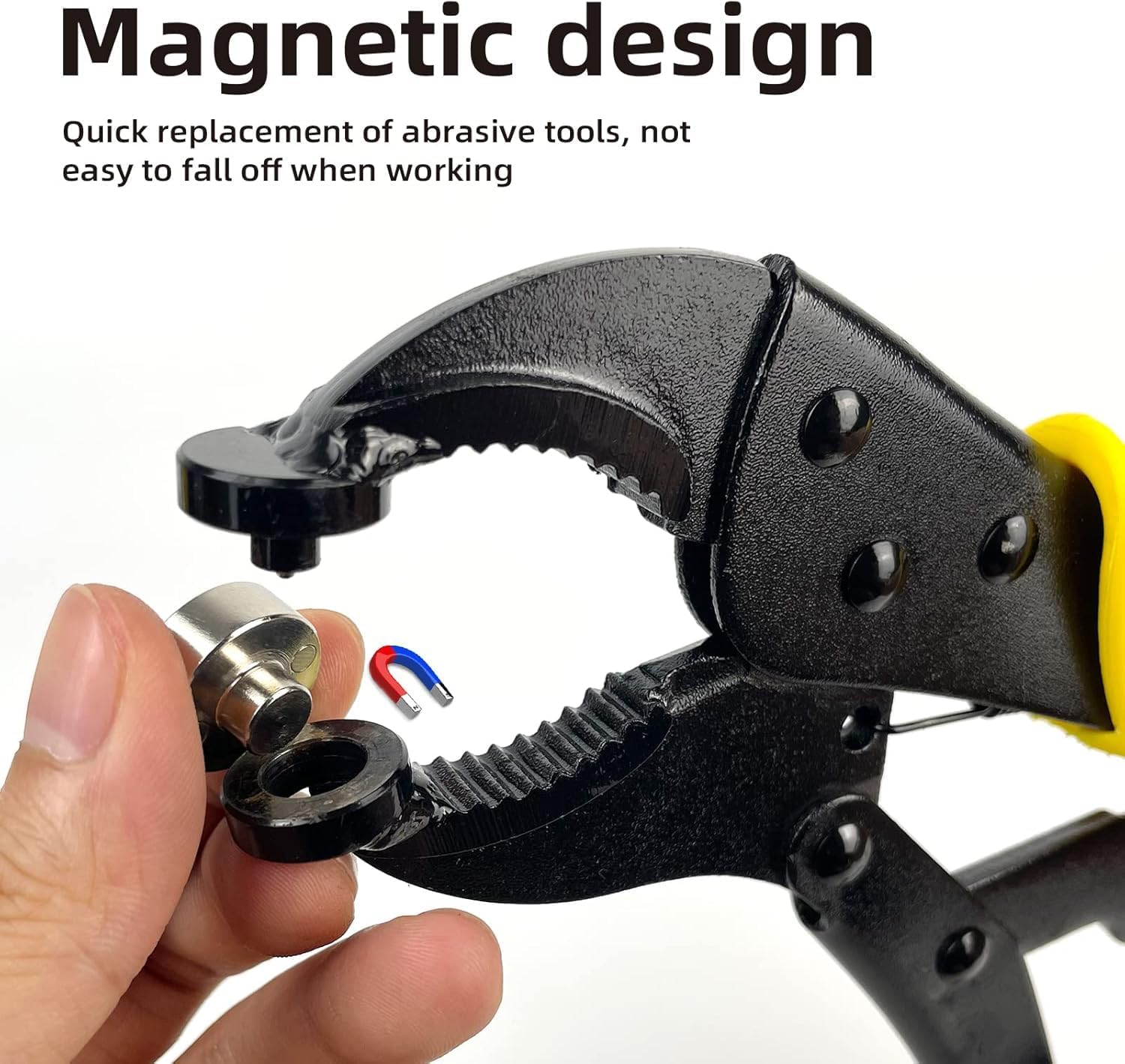 - Stanzfunktion: Zusätzliche Stanzfunktion, der Durchmesser des Lochs beträgt 3 mm, was dem Durchmesser der meisten Schnappsäulen entspricht. Ohne die Mühe, Werkzeuge zu wechseln, kann ein Leinwand-Snap-Werkzeug alles tun!