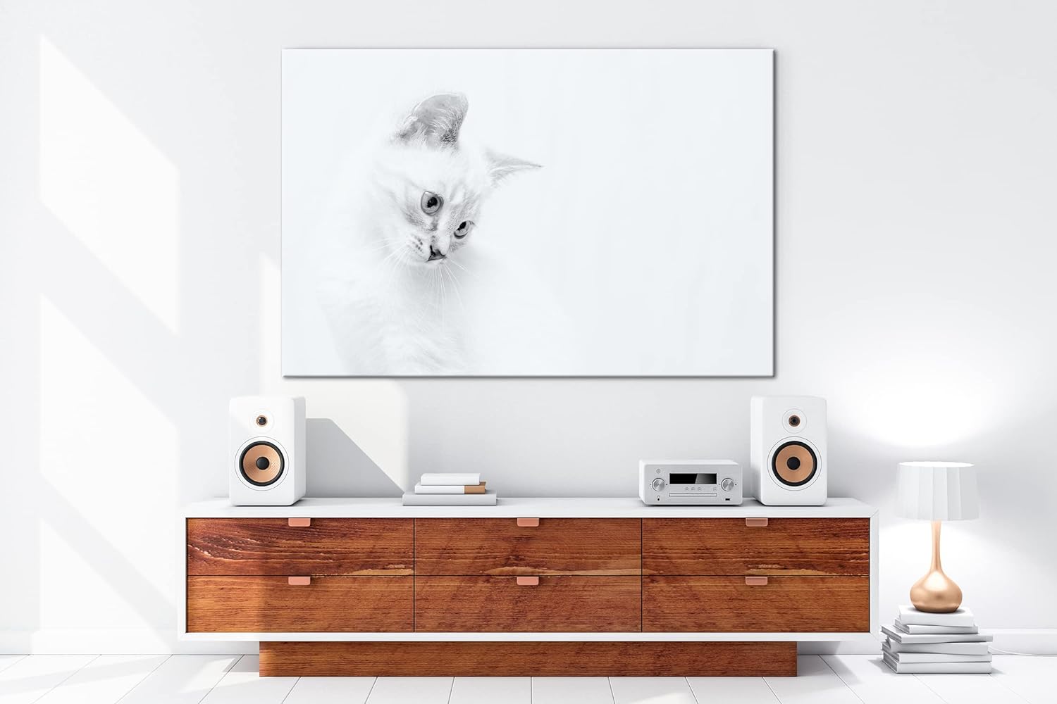 deyoli schneeweisses Kätzchen Format: 80x60 als Leinwandbild, Motiv fertig gerahmt auf Echtholzrahme
