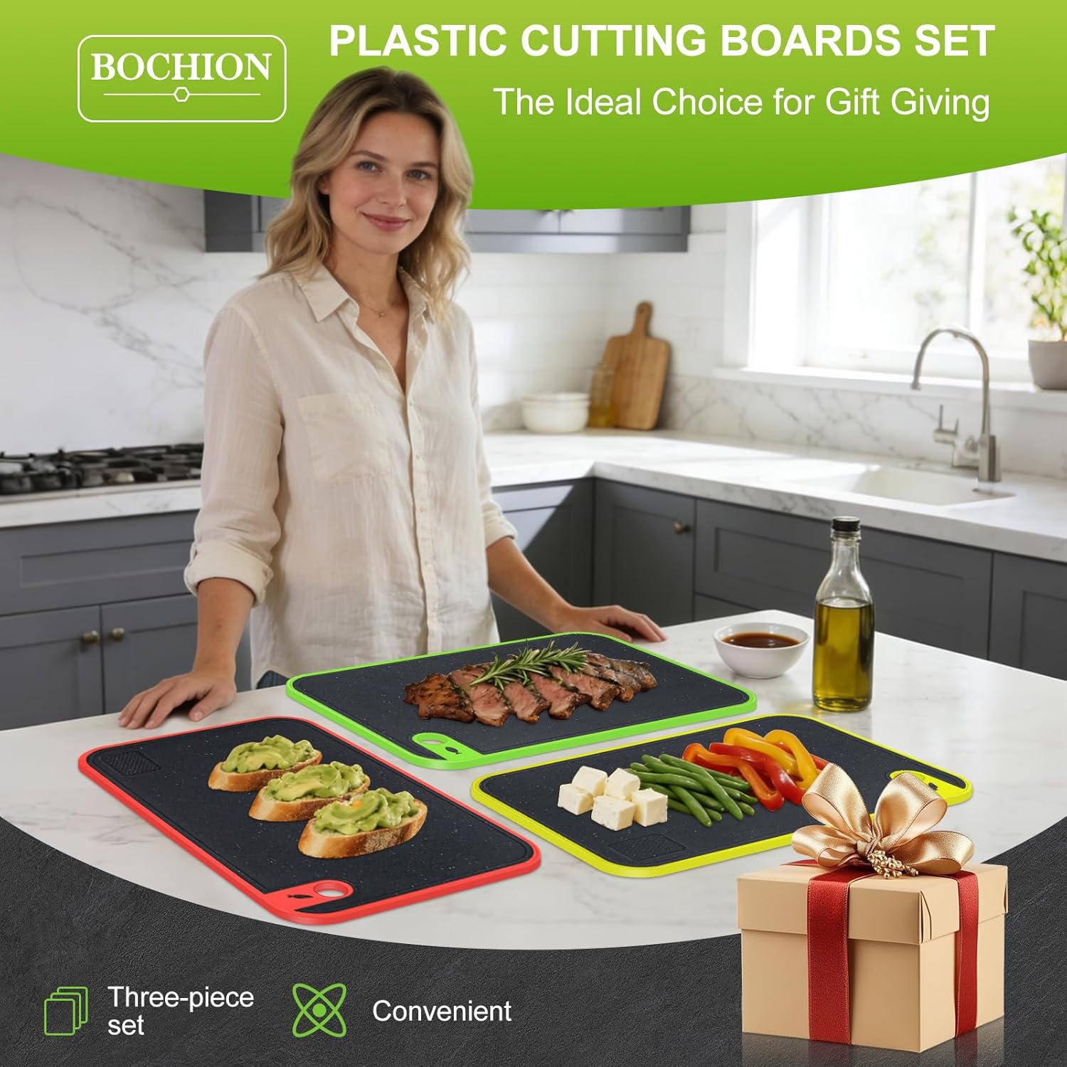 - ✔IHRE IDEALE GESCHENKOPTION: Diese 3 Flexible, leichte Küchenbrett Kunstoff erfüllen Ihre Schneidbedürfnisse, egal ob Sie Gemüse schneiden, Fleisch tranchieren oder eine Garnitur vorbereiten. Hochwertiges Produkt, praktisches Design und
