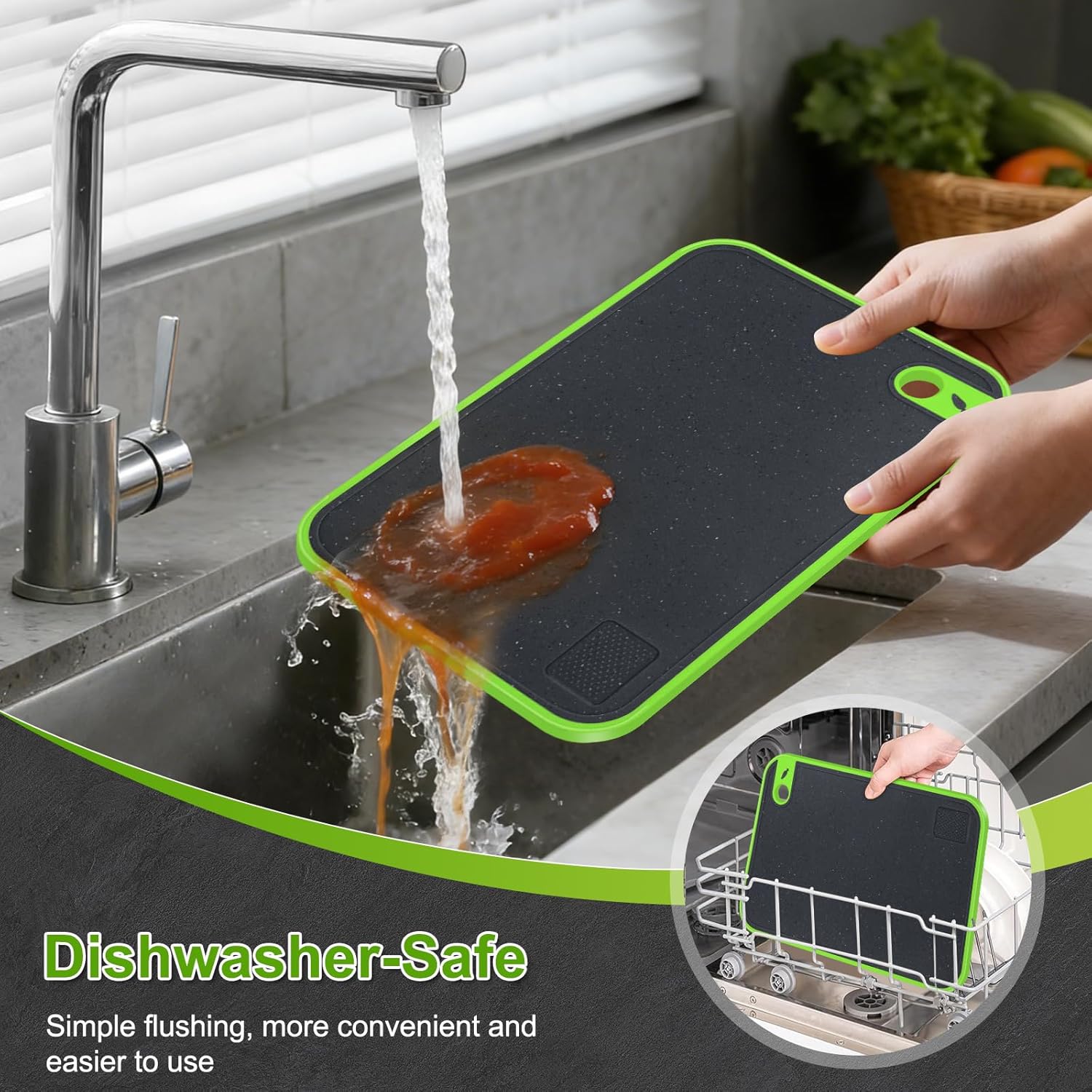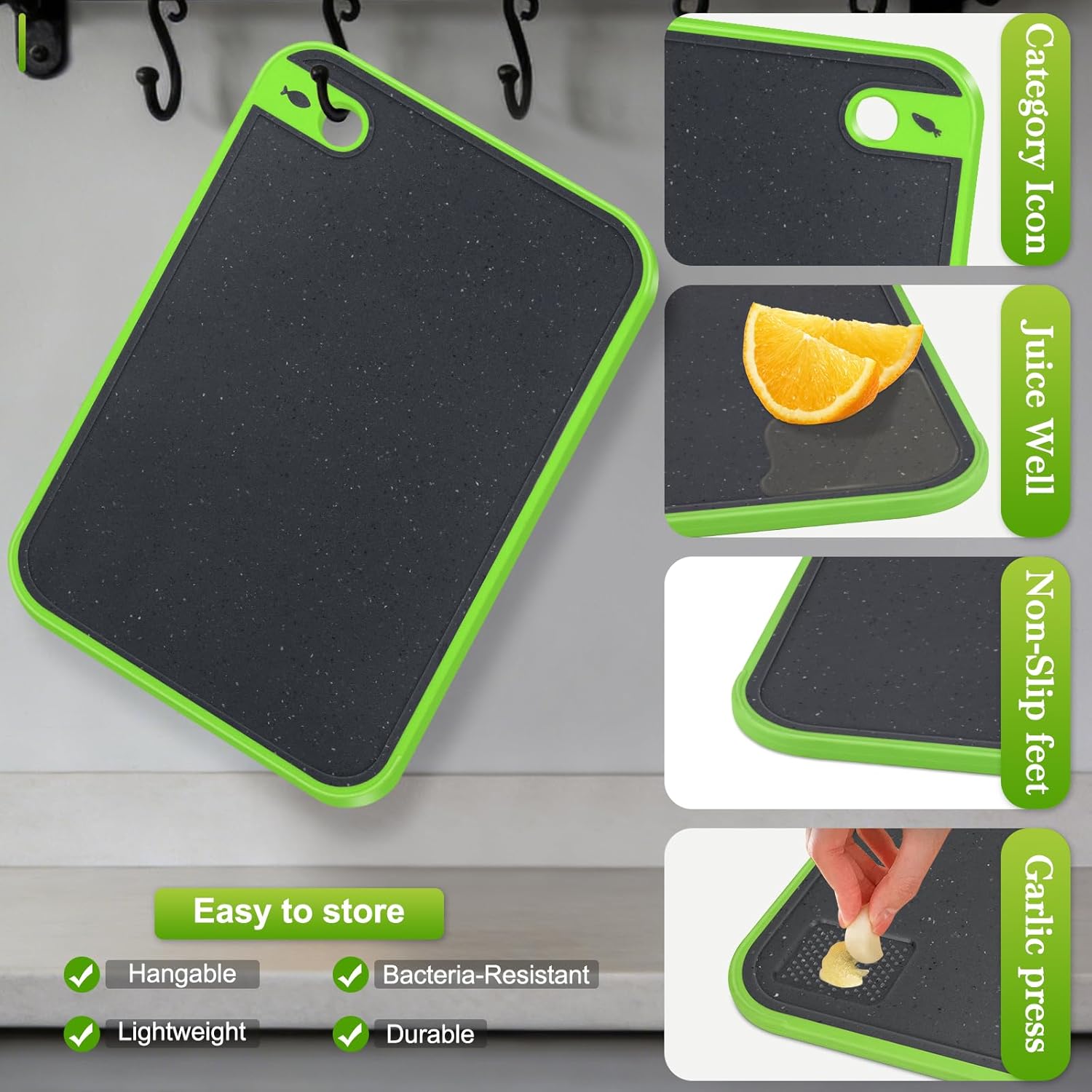 - ✔HOCHWERTIGES MATERIAL: Das Schneidebrett Set besteht aus BPA-freiem PP-Material, das stark, langlebig, antibakteriell ist. Doppelseitiges reversibles Design verdoppelt Nutzungsmenge, ist nicht leicht zu verformen und zu brechen. Das Schneidbrett