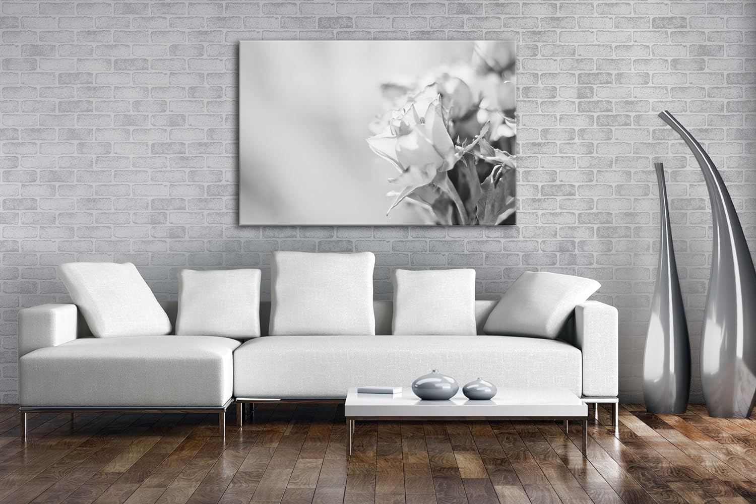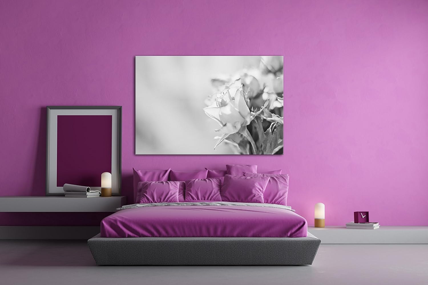 schöne Rosen in der Natur Effekt: Schwarz/Weiss im Format: 80x60 als Leinwandbild, Motiv fertig gera
