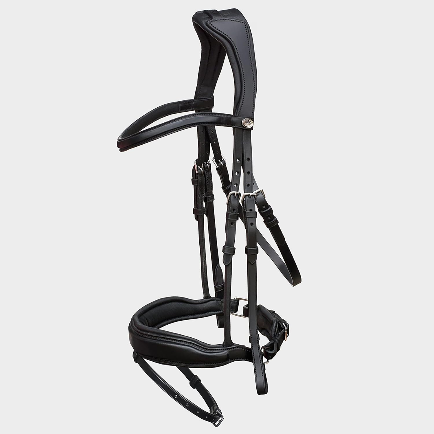 - Das speziell entwickelte Kopfstück minimiert den Druck auf das Genick und die Halsmuskulatur und bietet den Pferdeohren gleichzeitig ausreichend Bewegungsspielraum.