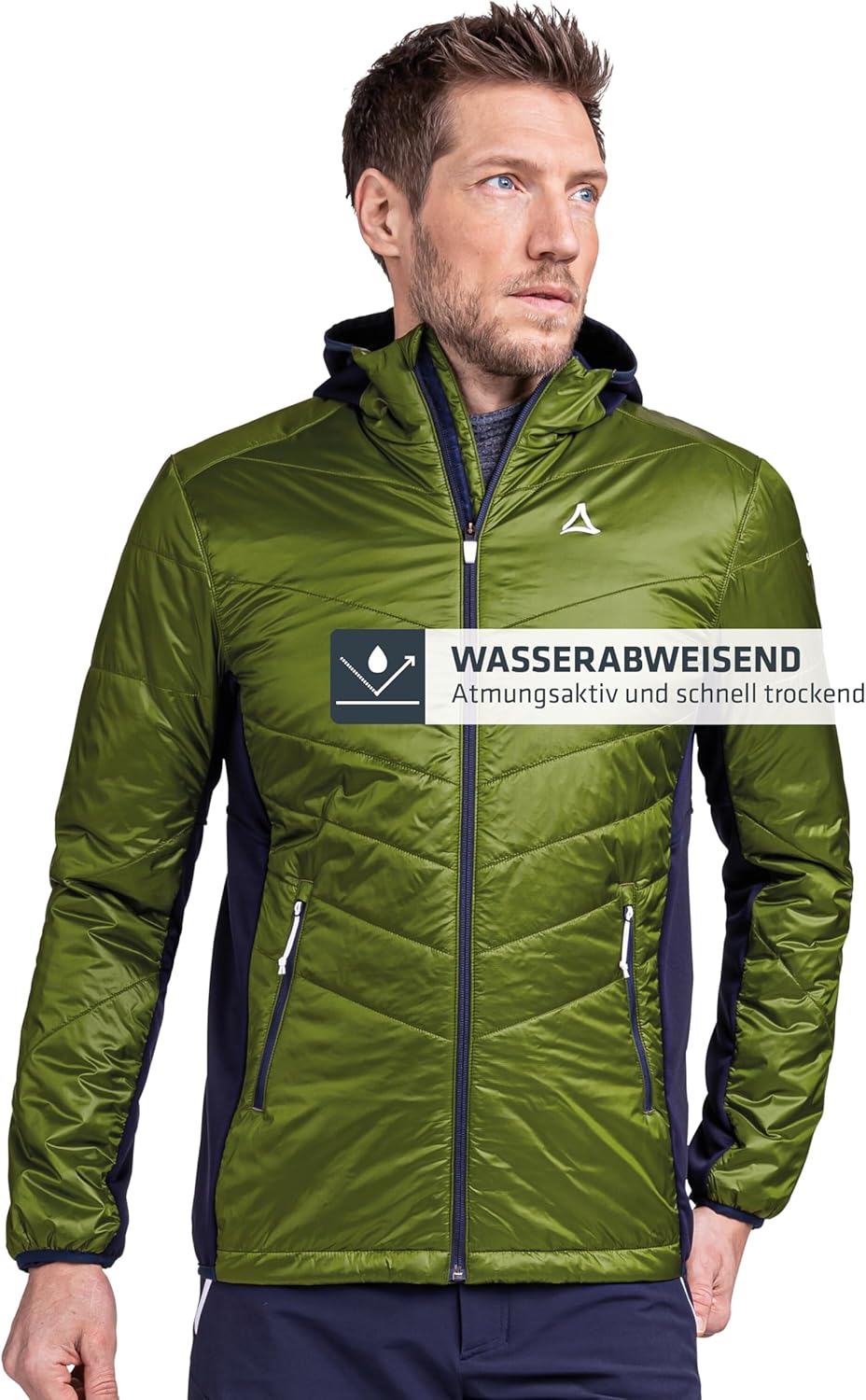 - Lieferumfang & Details: Schöffel Hybrid Jacket Stams M, wasser- und winddichte Herren Jacke mit fester Kapuze, Material: 100 % Nylon, Modellnummer: 23583, Model im Foto trägt Grösse 50