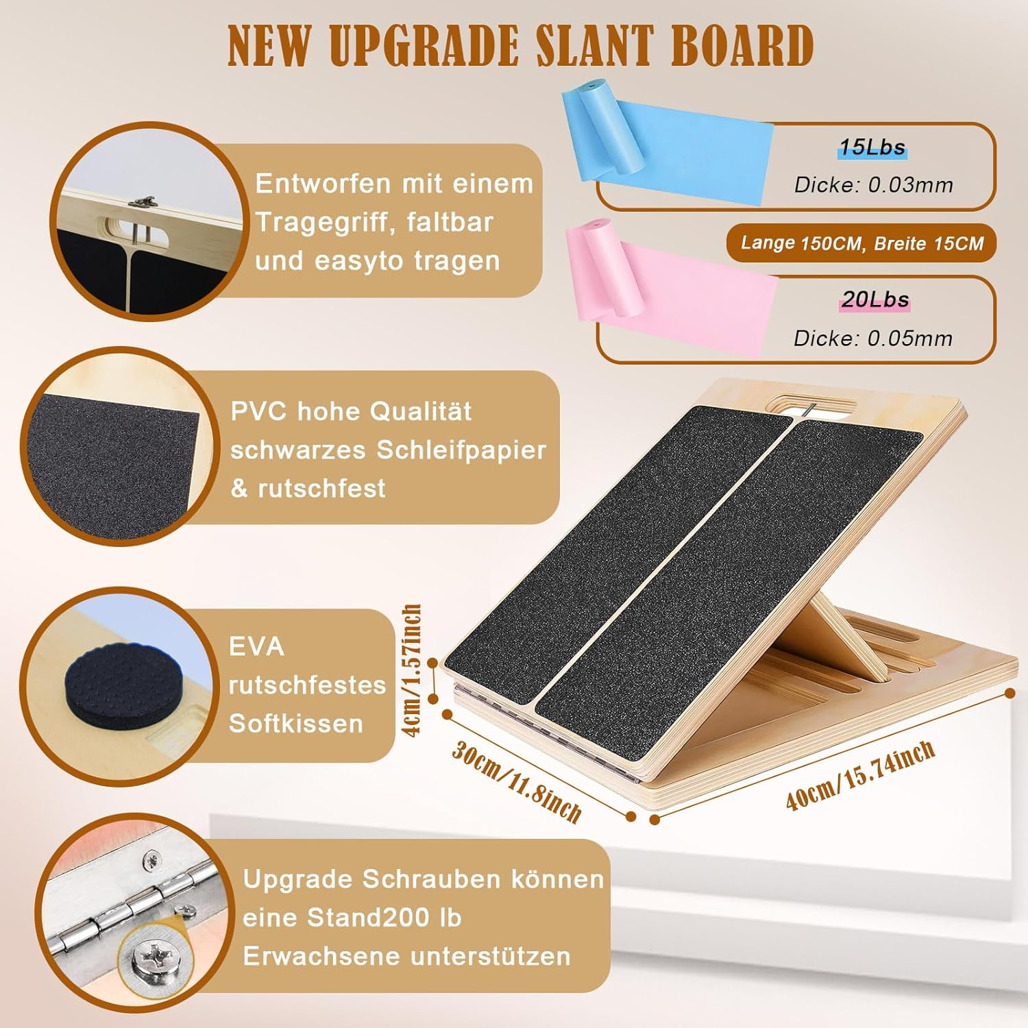 - [Vielseitig einsetzbar für alle Fitnesslevel] Das Schrägbrett-Set enthält: 1 Holz Schrägbrett, 2 Fitnessbänder. Bei gemeinsamer Verwendung ist der Effekt besser, Egal, ob Sie die Flexibilität verbessern, sich von Verletzungen erholen oder wichtige