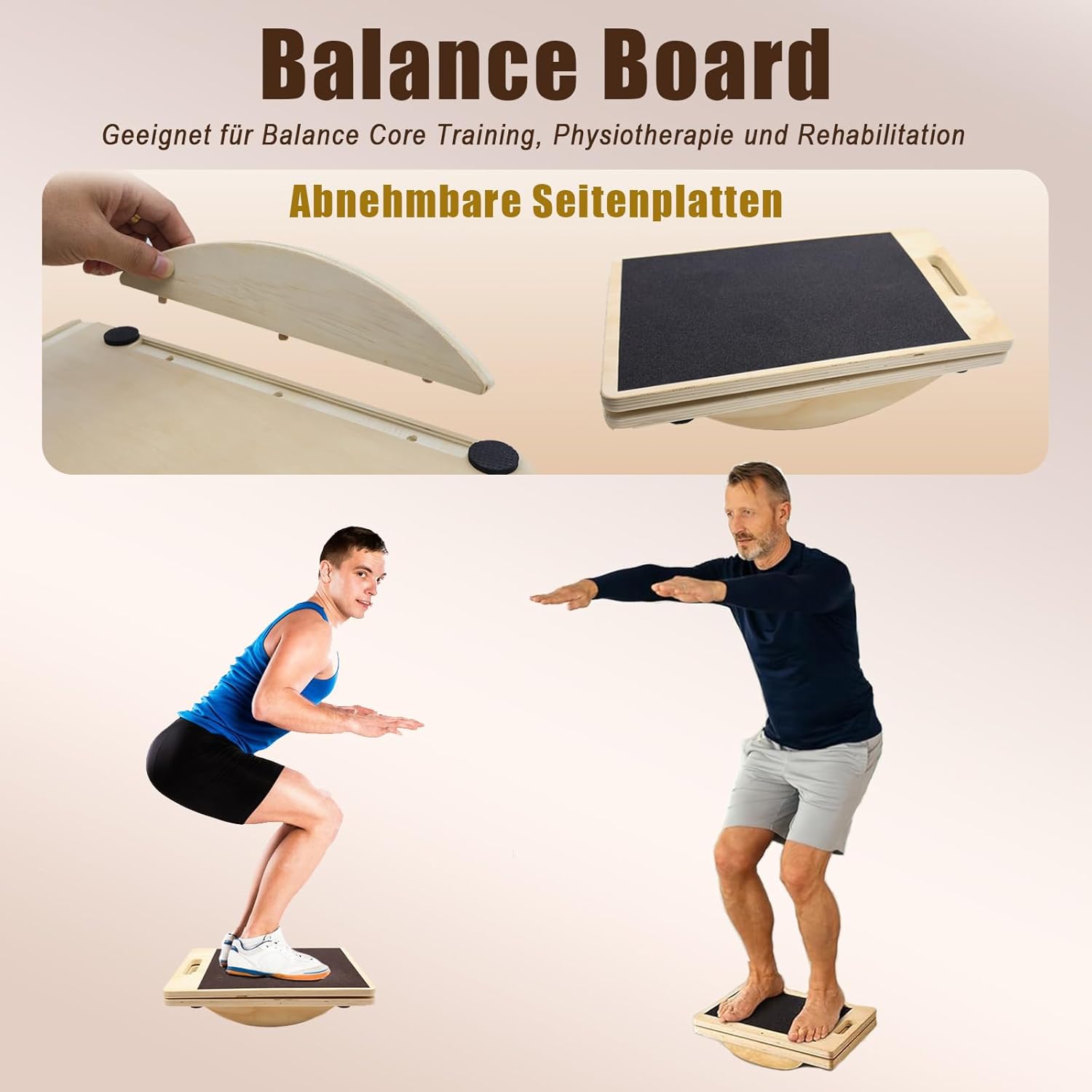 - [Solides und robustes Material] Unser Gleichgewichtstrainer besteht aus "langlebigem Kiefernholz", entwickelt für zuverlässige Unterstützung bei Kniebeugen, Dehnübungen und Balance-Übungen. Die **stabile Konstruktion** gewährleistet langfristige
