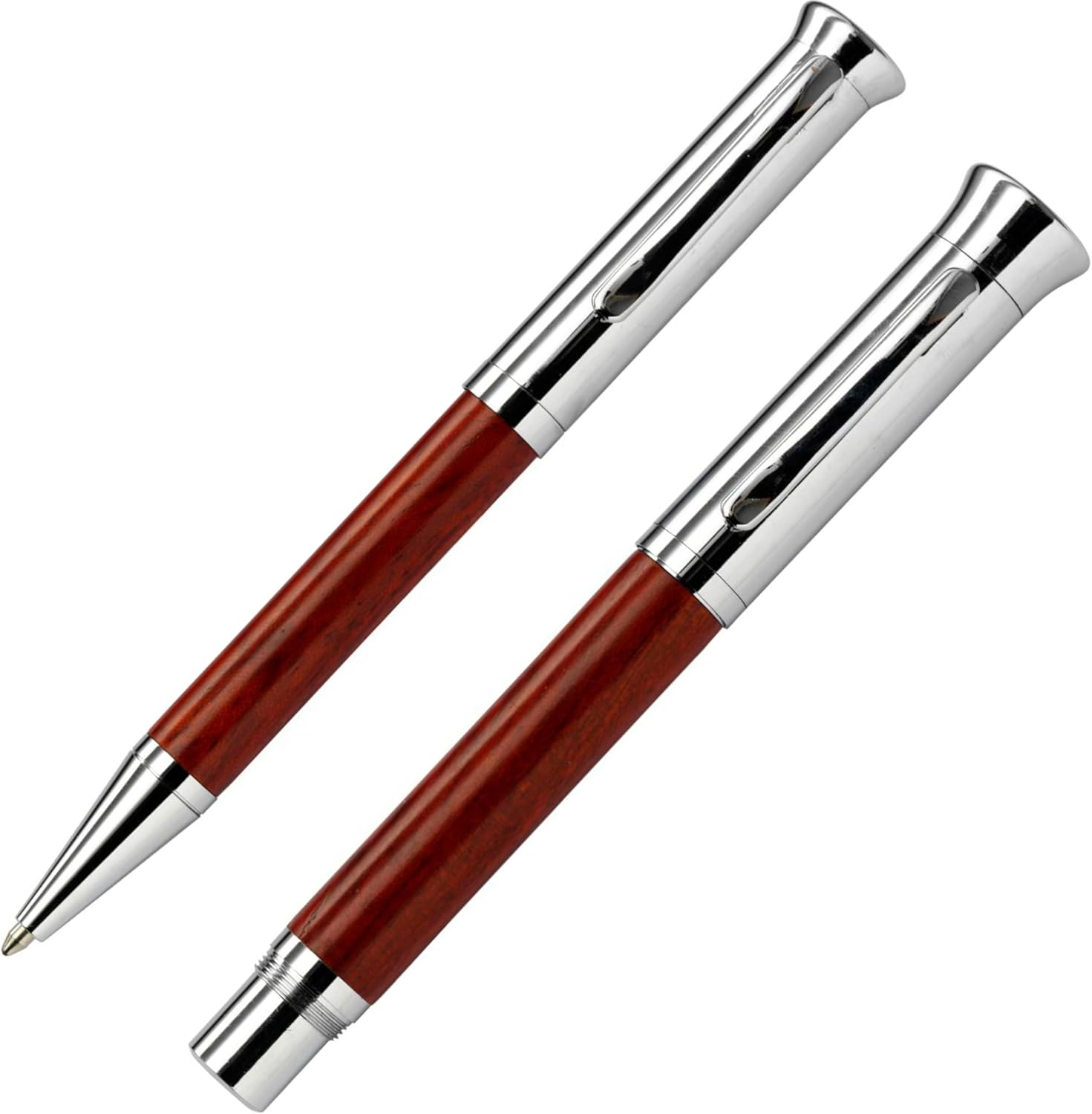 - Wir bieten Ihnen ein edles Schreibset bestehend aus einem edlen Holz-Kugelschreiber sowie einem Holz-Rollerball. Die hochwertigen Schreibgeräte sind in einem edlen Rosenholz-Etui verpackt.