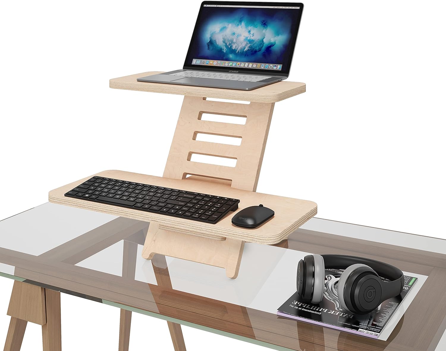 - Der Schreibtischaufsatz verfügt über zwei Platten, auf die Sie Ihren Laptop und das Computerzubehör stellen können. Ein durchdachtes Design ermöglicht es, die Bretter in beliebiger Höhe zu platzieren. Die Bretter sind so gross, dass Sie problemlos