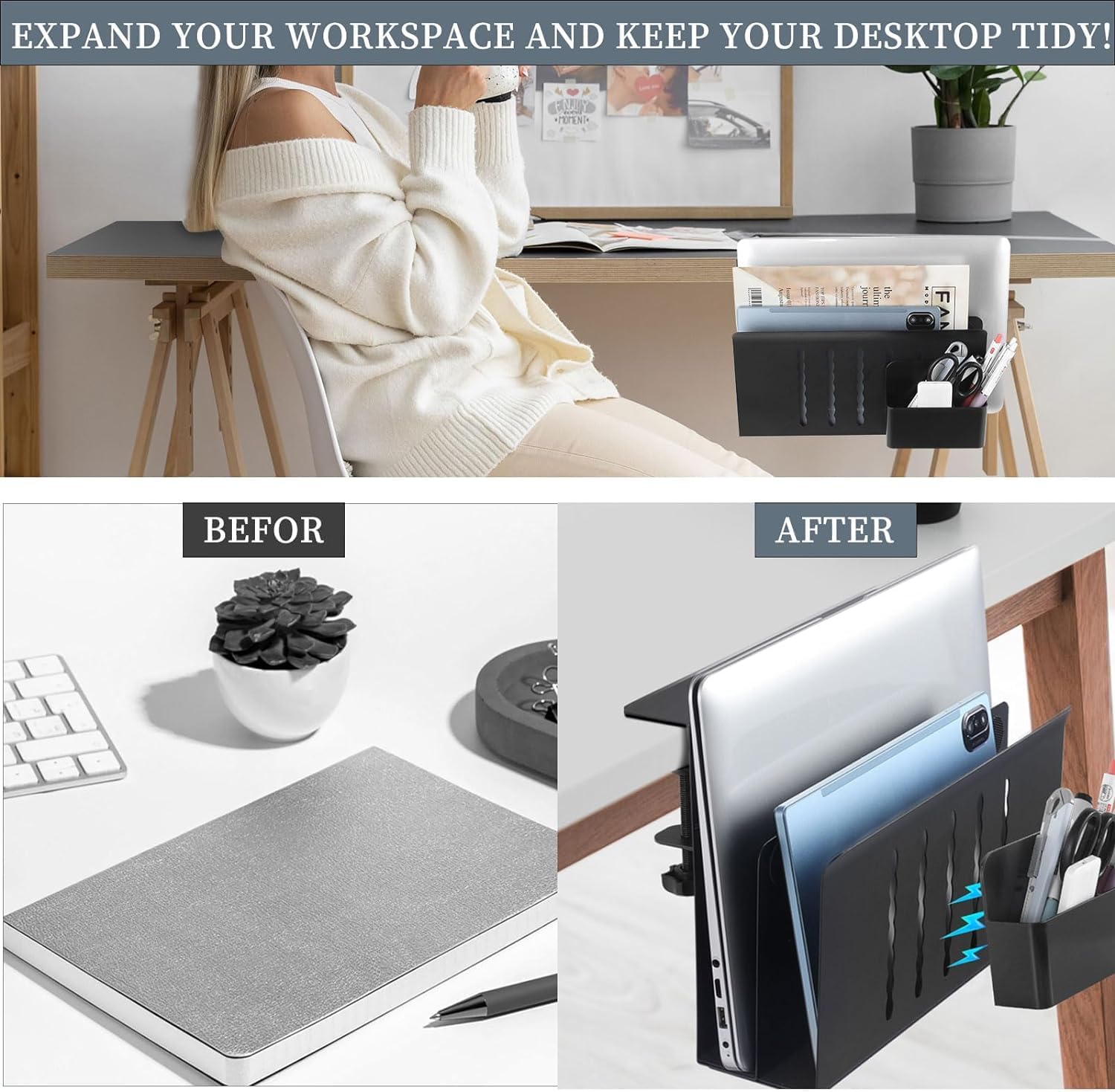 - 💻Multifunktionaler schreibtisch organizer: Dieser seitlich montierte Tisch tisch organizer büro kann nachträglich an der Seite eines Schreibtisches angebracht werden, um problemlos Laptops, Tablets, versteckte Kabel, internes Zubehör, Handbücher,