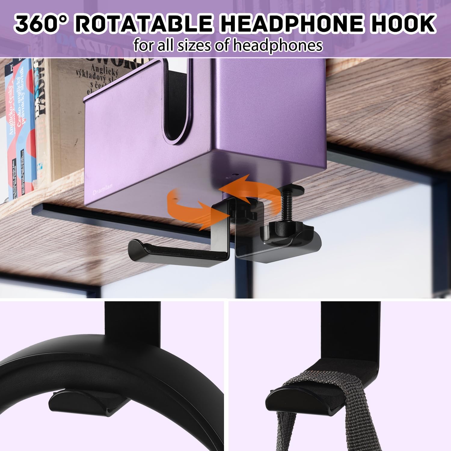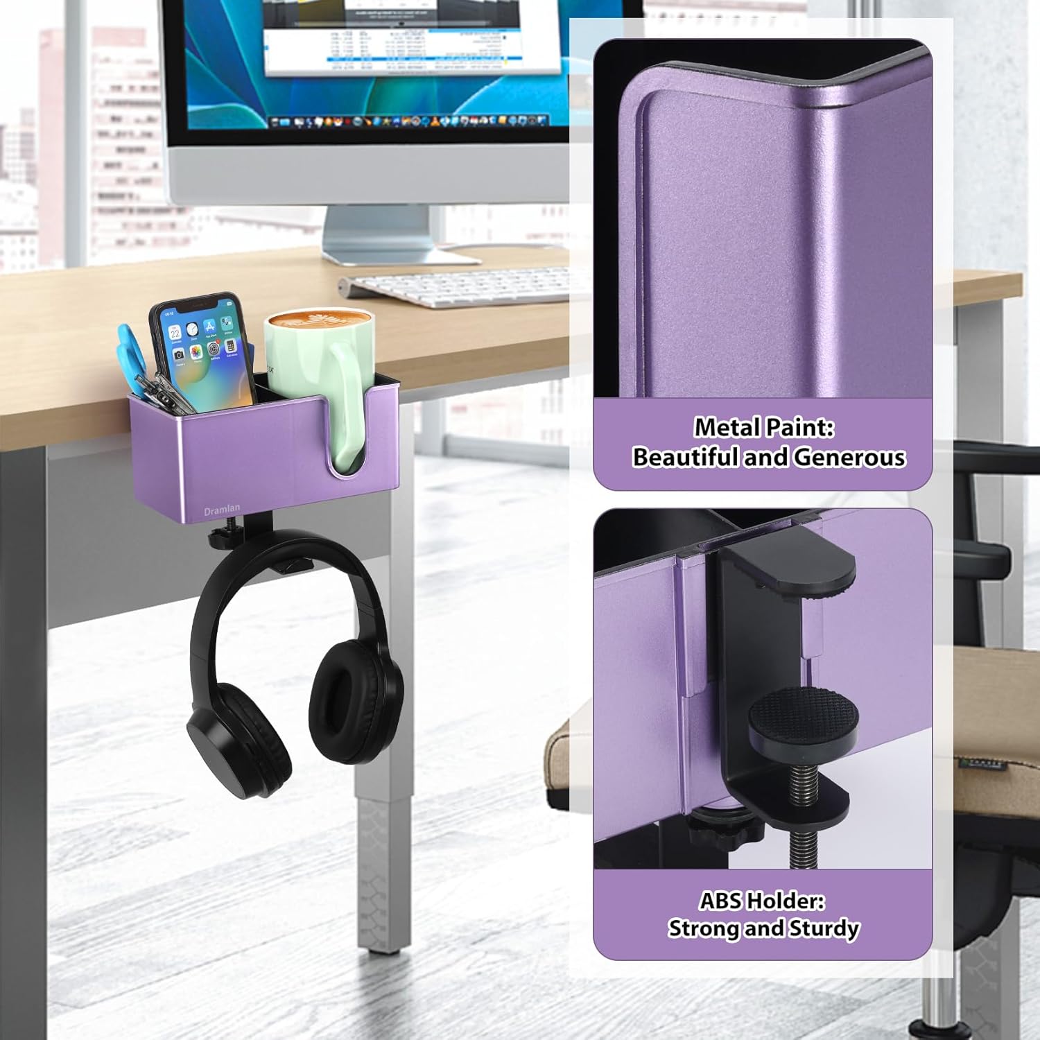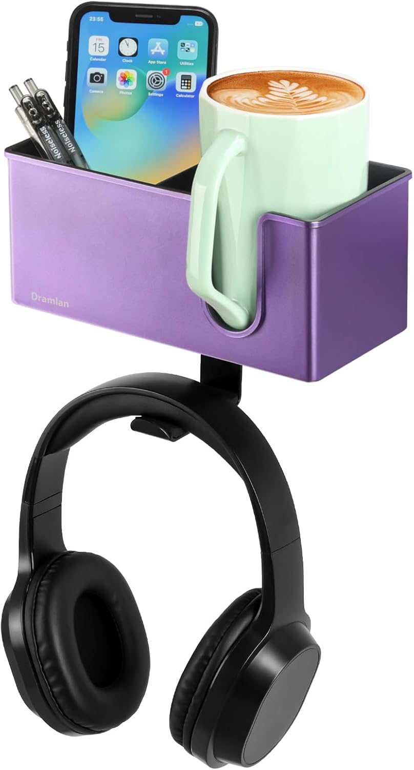 - Schreibtisch-Getränkehalter und Kopfhörer-Aufhänger: Der 2-in-1-Schreibtisch-Organizer mit Getränkehalter kann nicht nur Ihre Gaming- oder Audio-Headset-Kopfhörer platzieren, sondern auch mit einer Desktop-Aufbewahrungsbox ausgestattet. Der