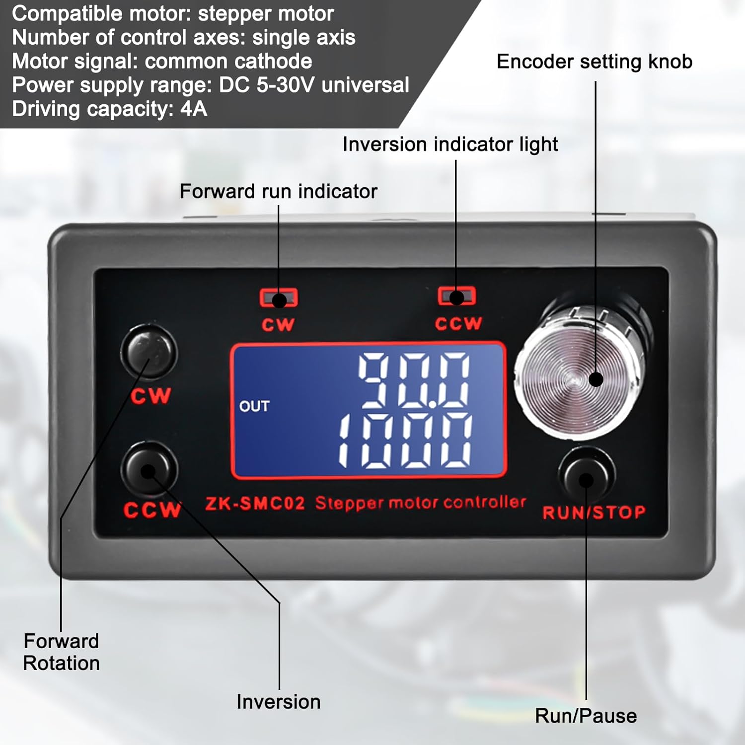 - 【Vorwärts und Rückwärts】Das Bedienfeld verfügt über eine Vorwärtsdrehungs-Anzeigeleuchte(cw) und eine Rückwärtsdrehungs-Anzeigeleuchte(ccw). Schrittmotor-Treiber-Controller kann nicht nur die Drehrichtung durch Drücken der Taste, sondern