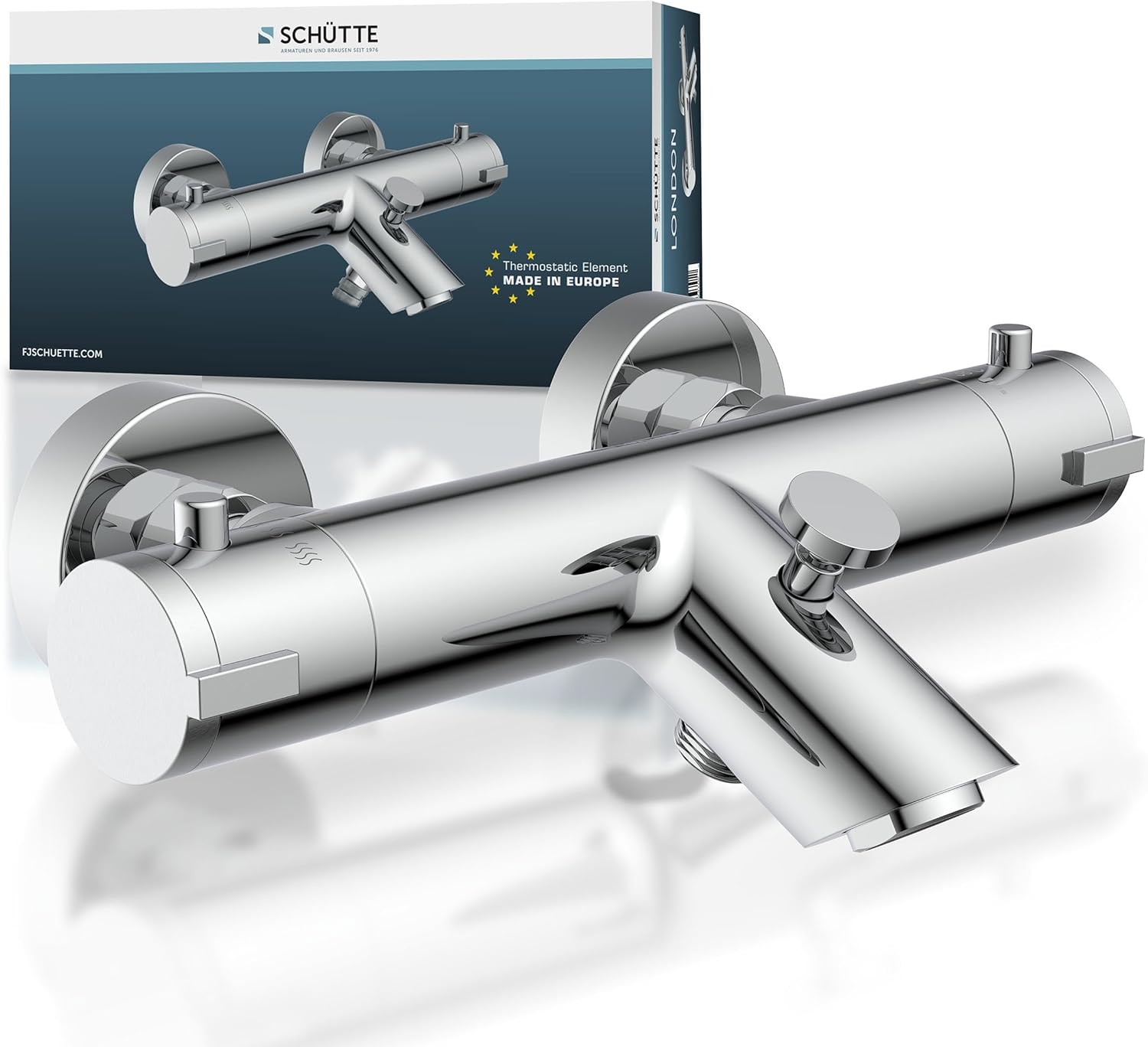 - 📦 LIEFERUMFANG: 1 x Thermostat Badewannenarmatur LONDON mit Verbrühschutz, 2x Rosetten 2x S-Anschlüsse für die Wandmontage, 1x vollständiges Montagematerial, 1x Deutsche Montageanleitung