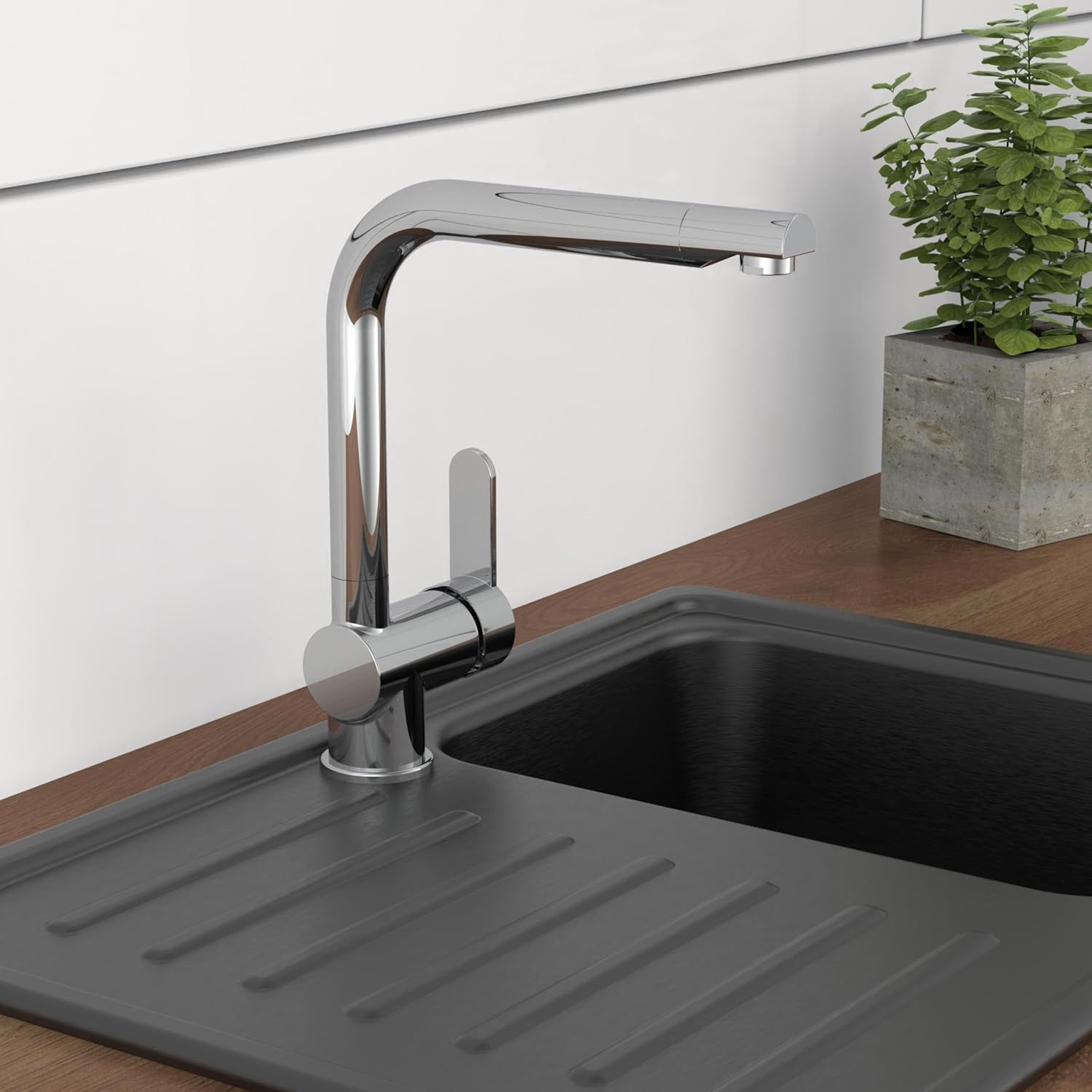- ✔ FUNKTIONEN: Der hohe (ca. 32cm), schwenkbare Auslauf hilft Ihnen z. B. beim Befüllen von Gefässen oder Ihrer Kaffeemaschine und bietet sich perfekt für Doppelspülen wie auch Einzelspülen an.