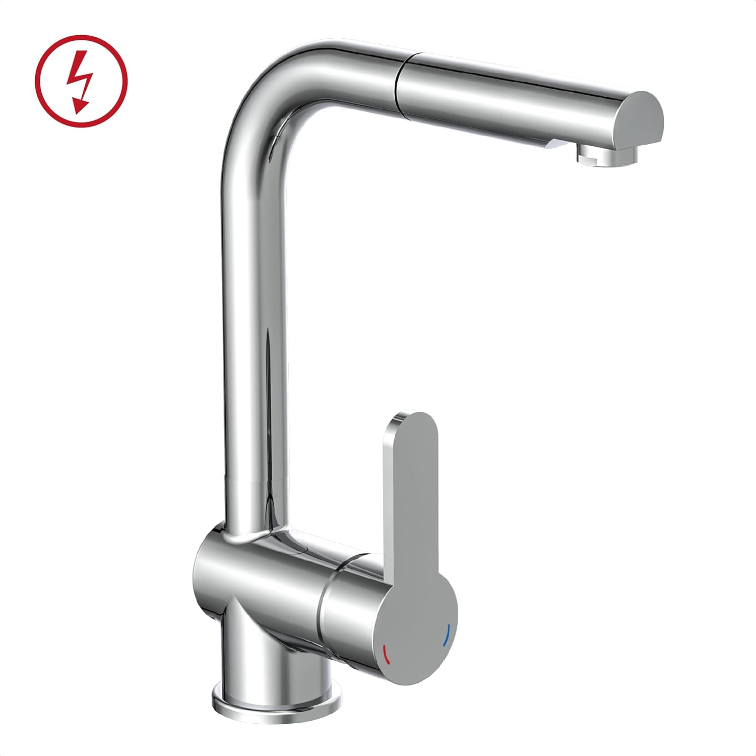 - 🔄 FLEXIBEL: Die ausziehbare, praktische Geschirrbrause erleichtert die Arbeit in der Küche (z.B. beim Befüllen von Töpfen oder beim Abwaschen in der Spüle). Die Brause kann ca. 70 cm weit herausgezogen werden.