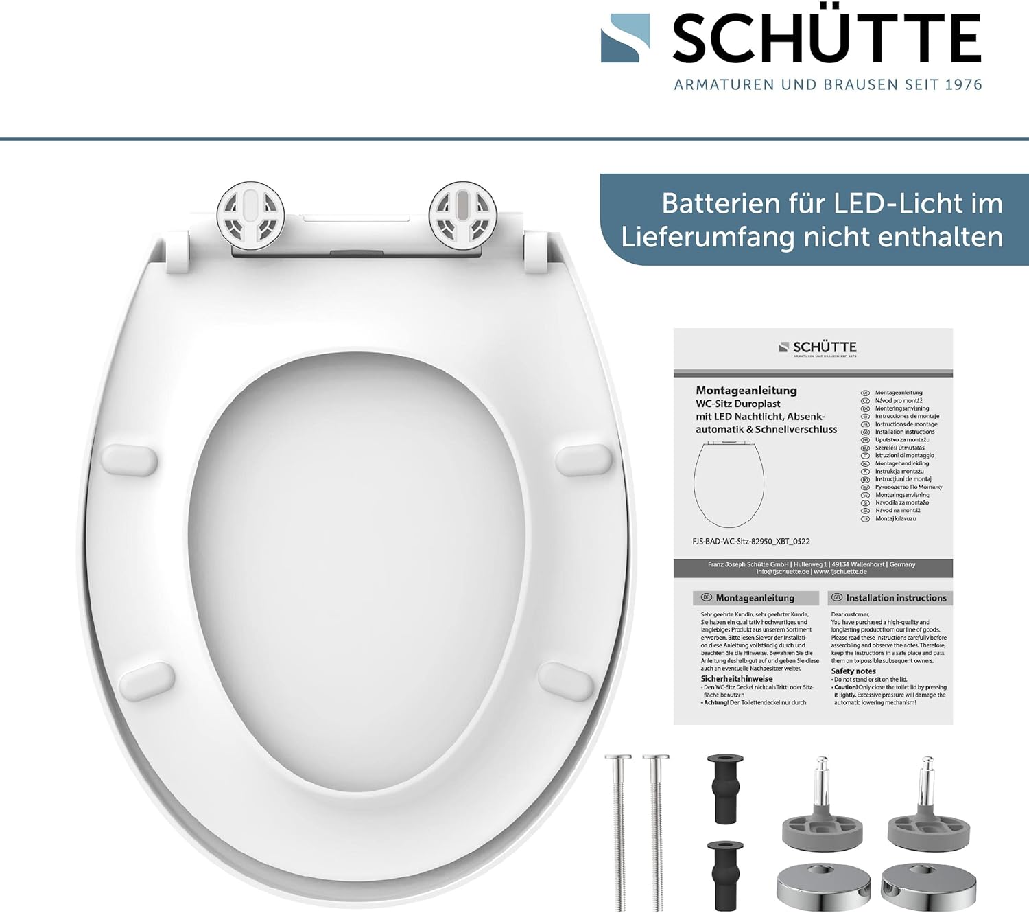 - 📦 𝐋𝐈𝐄𝐅𝐄𝐑𝐔𝐌𝐅𝐀𝐍𝐆: 1x LED WC-Sitz mit Absenkautomatik, Brille und Sitz, Abstandspuffer, 2x Befestigungsscharniere, Montagematerial, Montageanleitung
