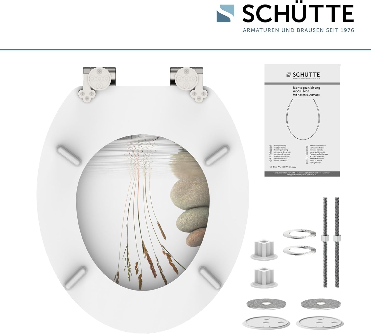 - 📦 LIEFERUMFANG: 1x WC-Sitz, Abstandspuffer, 2x Befestigungsscharniere aus Metall, Montageanleitunge: 370 x 55 x 450 mm), Montageanleitung