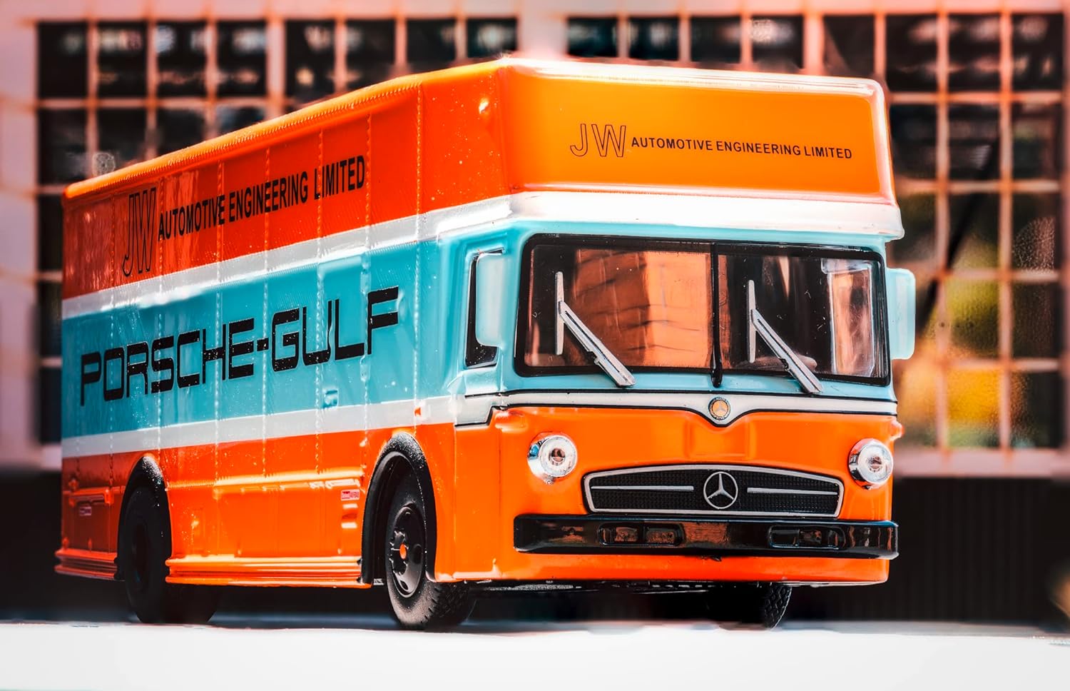 - orange/blau, Die-cast, Geschlossener Karton mit Schiebehülle