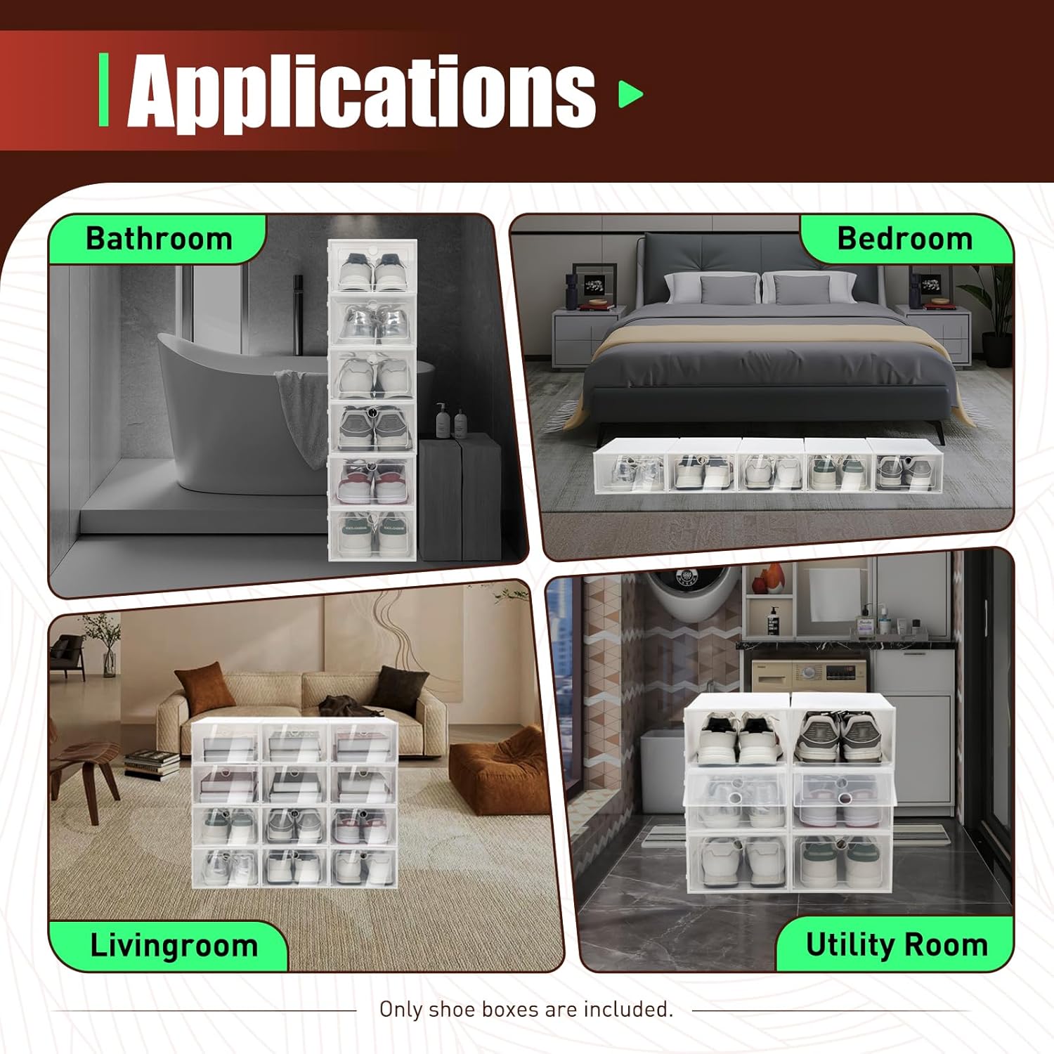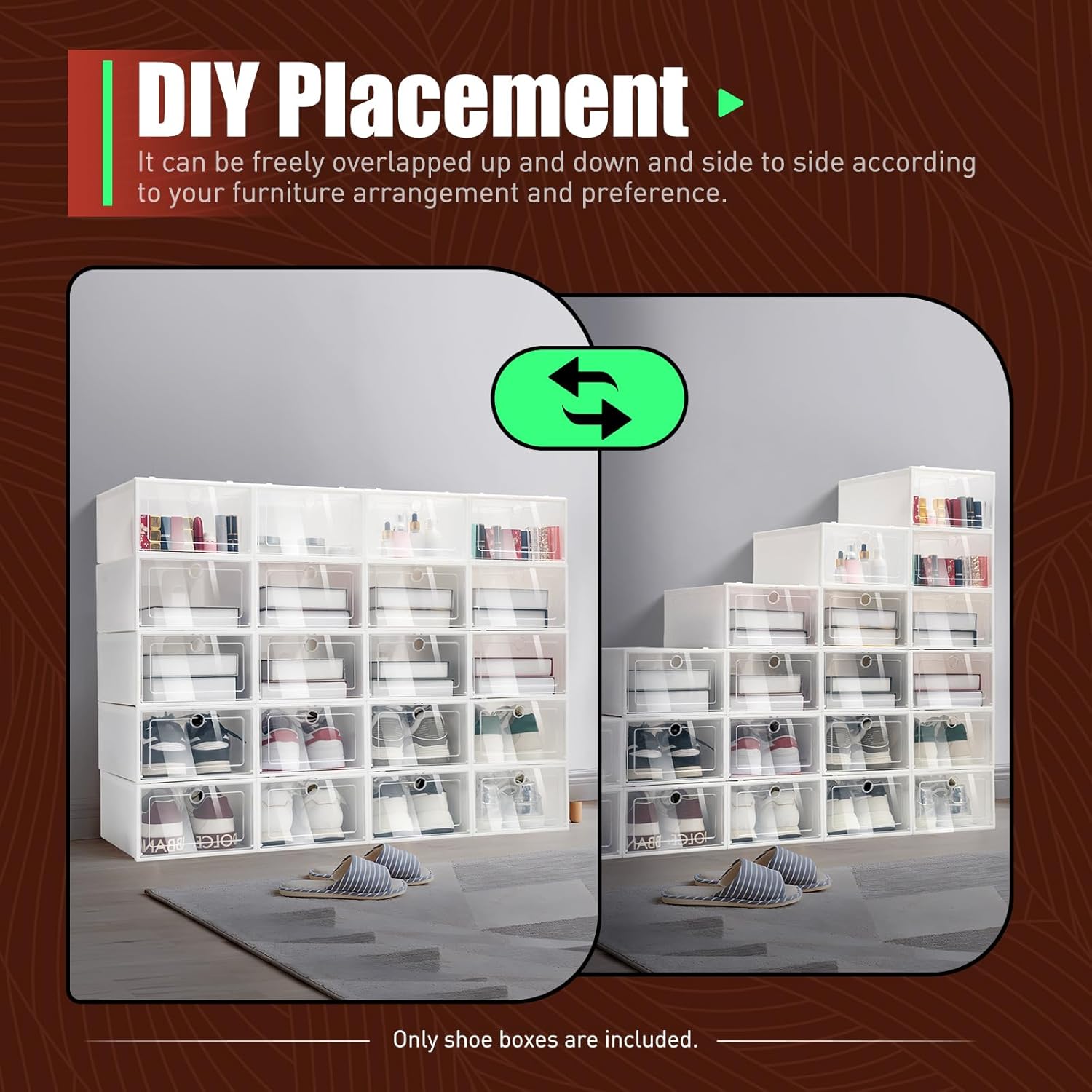 - Ein Satz von 20/24 Schuhschränken reicht aus, um Ihre aufgeräumten Aufbewahrungsbedürfnisse zu erfüllen. Das transparente Design sorgt dafür, dass Ihre Kollektion angezeigt werden kann, spart Ihnen Platz in vollem Umfang und hält Ihr Zuhause sauber