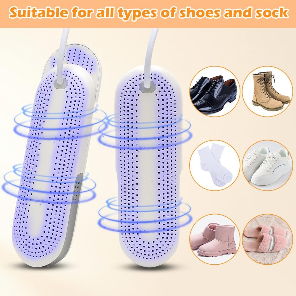 - 【Aktualisierter Schuhtrockner】Unser elektrischer schuhtrockner mit PTC-Heizelement entfernt effektiv Feuchtigkeit, Bakterien und unangenehme Gerüche, für trockene, frische Schuhe. Ideal für alle Arten von Schuhen, einschliesslich Fussballschuhe