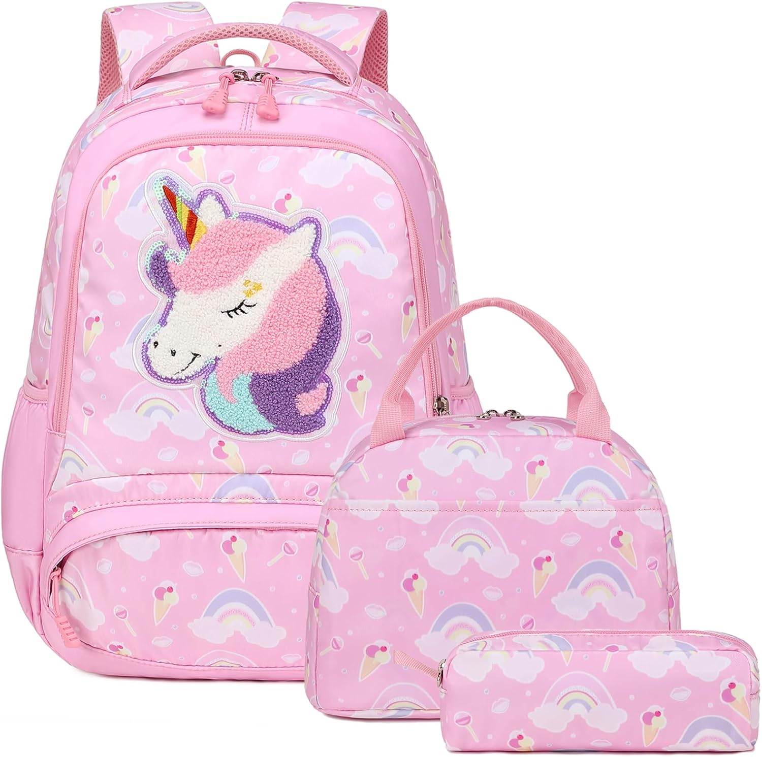 - 3 TLG. Einhorn Rucksack - Diese Schultasche Set kommt mit 1 * Rucksack Kinder Mädchen , 1 * Lunchpaket,1 * Federtasche