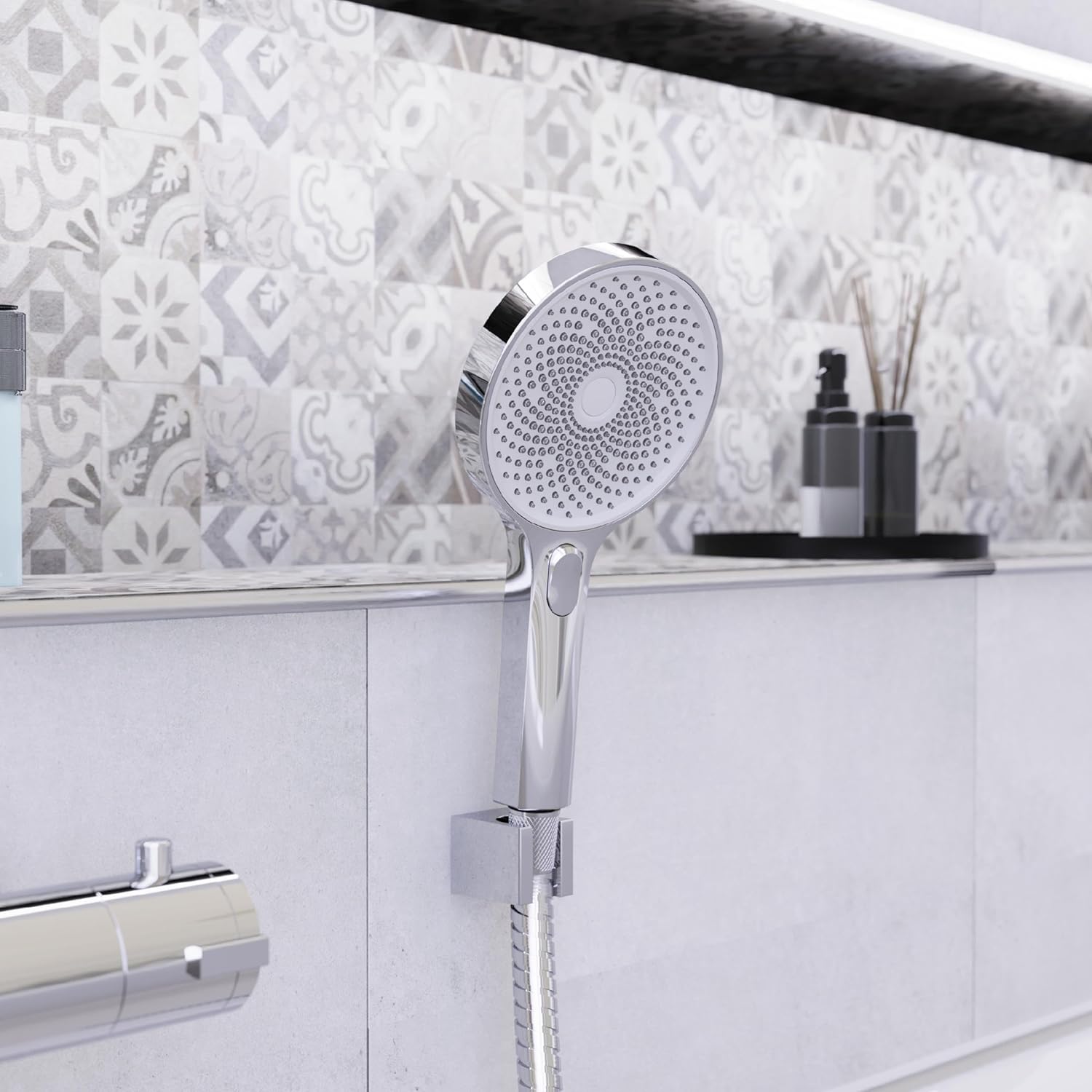 • 💧 𝟑 𝐒𝐓𝐑𝐀𝐇𝐋𝐀𝐑𝐓𝐄𝐍: Flexibel für Ihre Vorlieben – von warmem Sommerregen bis tropischem Nebel. Der Push-Umsteller des Duschkopfs wechselt bequem per Knopfdruck zwischen den Strahlarten.