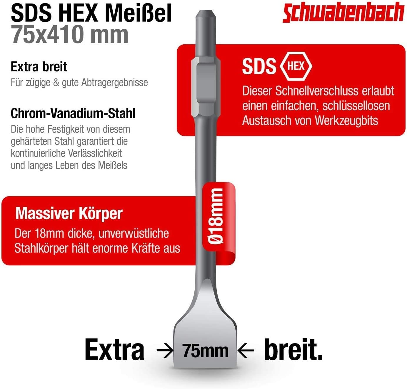 - โ๏ธ ๐๐๐ ๐๐๐๐๐๐๐๐๐ - gehรคrteter Stahl garantiert die kontinuierliche Verlรคsslichkeit und lange Haltbarkeit dieses leistungsstarken Werkzeugs. Robuste SDS-HEX Meissel fรผr die gรคngigsten Meissel-, Durchbruch- und