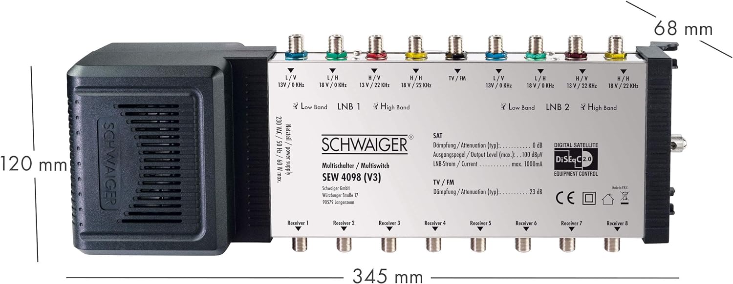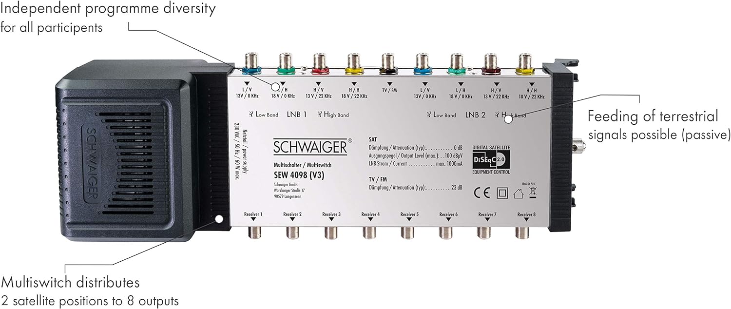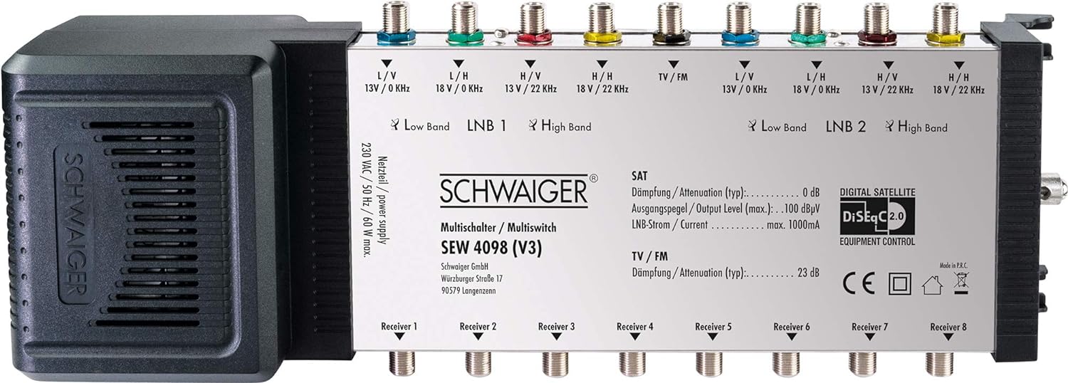- Schwaiger SEW4098 SAT Multischalter Eingaenge (Multischalter): 9 (8 SAT/1 terrestrisch) Teilnehmer-A