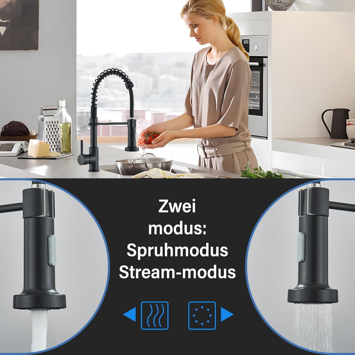 - 【Paradigma】Niederdruck Armatur Küche kann auch in den Duschmodus wechseln, sehr praktisch zu bedienen. das Wasser fliesst sehr gleichmässig und kriegt man den Schmutz an dem Geschirr leicht weg.