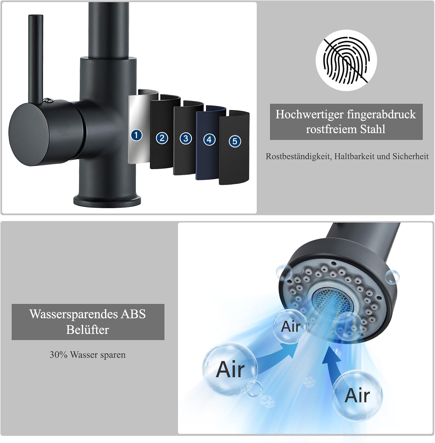 - 【Einfach zu installieren】Küchenarmatur ist sehr einfach zu installieren. Standard 3/8 Zoll Norm-Anschluss; Einfache 1 Loch-Installation, inkl. Montagematerial und Anleitung. Wenn Sie irgendwelche Fragen haben, zögern Sie nicht, uns zu kontaktieren.