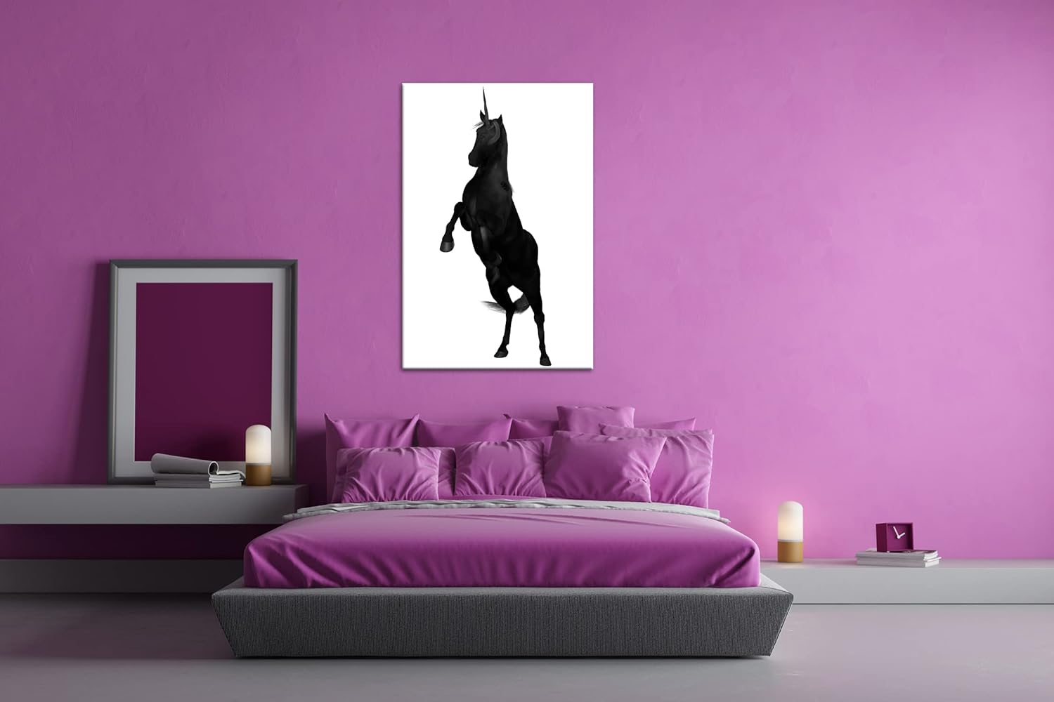 deyoli schwarzes Einhorn Format: 80x60 Effekt: Schwarz&Weiss als Leinwandbild, Motiv fertig gerahmt