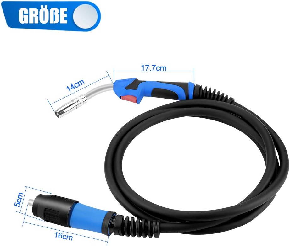- 【Bequemer Griff】Das Schutzgas Schlauchpaket verfügt über einen ergonomischen, bogenförmigen, rutschfesten Griff, der bequemer zu halten;Es kann den MAG / MIG-Schweissbrenner, der für alle MIG MAG-Geräte mit EU-Anschluss verwendet wird,