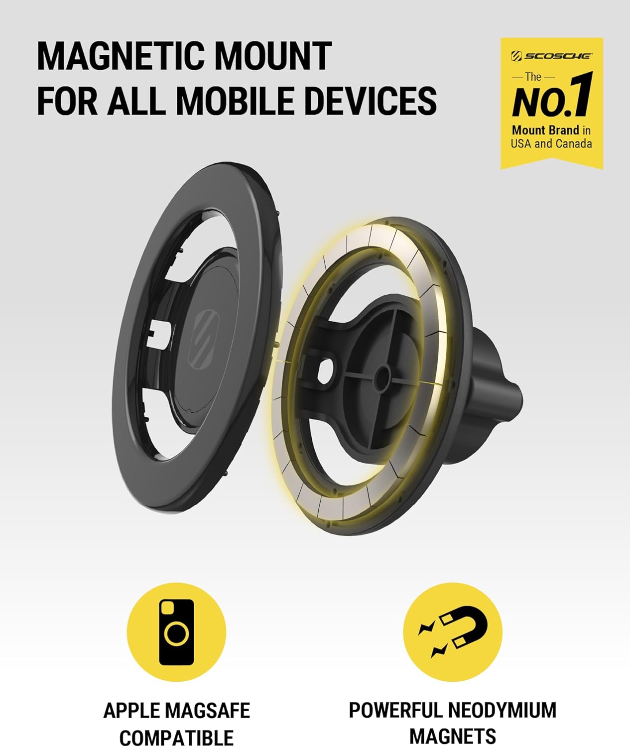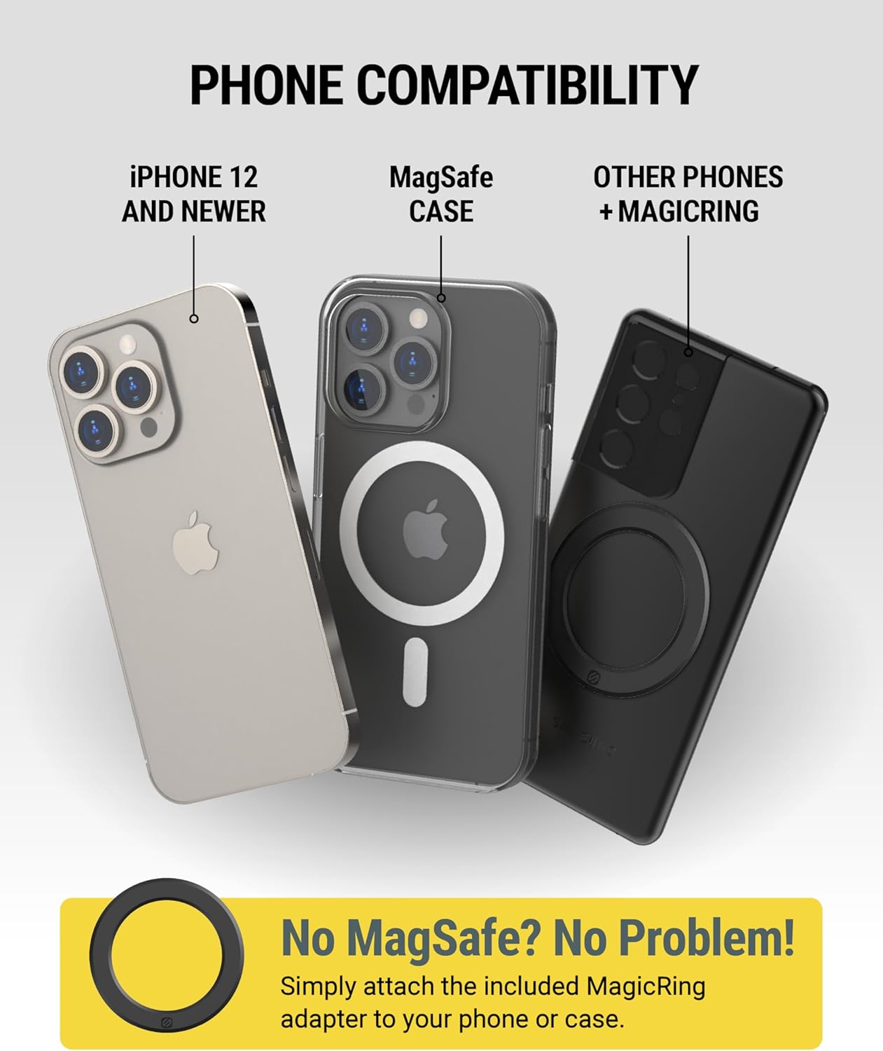 - Kaufen Sie mit Vertrauen: Unsere 2-in-1-MagSafe-Handyhalterung für das Auto enthält einen MagicMount-Magnethalterungskopf, eine selbstklebende Armaturenbrettbasis, einen Lüftungsclip, einen MagicRing-Adapter und ein Reinigungstuch