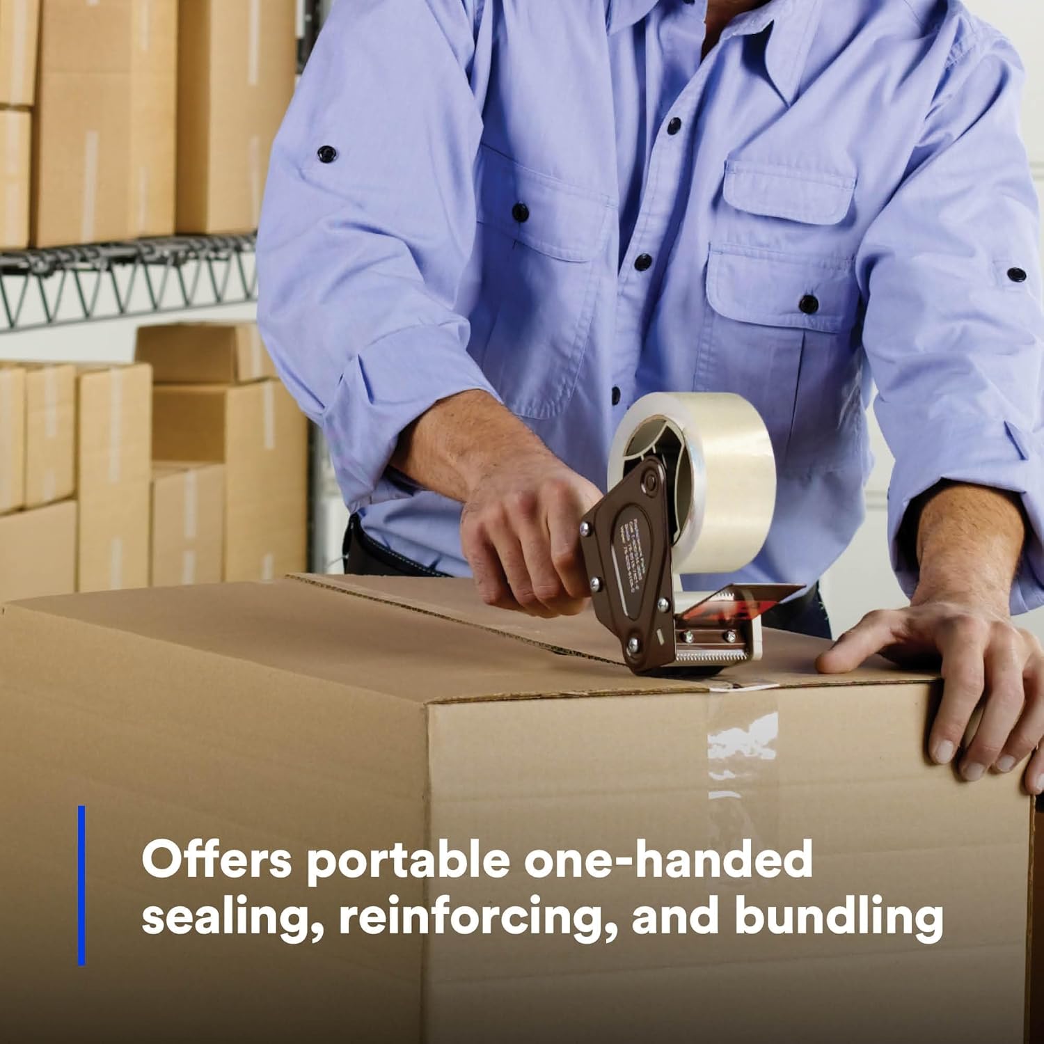 - Tragbar und einfach zu bedienen – Handgehaltener Packbandabroller für effizientes Abkleben von Versandkartons in Herstellung, Büro, Gewerbe und Einzelhandel.