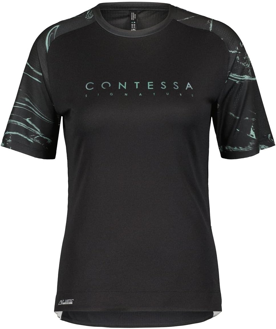 PRODUKTBESCHREIBUNGEN Robust, feminin und aerodynamisch. Die Contessa Signature-Kollektion ist für Frauen entwickelt, die besonders Wert auf die Optik und die Leistung ihres Bikes und ihrer Ausrüstung legen. Das unverkennbare SCOTT Trail Contessa Trikot mit kurzen Ärmeln verfügt über die Delta Technologie, welche die natürliche Kühlfunktion des Körpers optimiert. Das gefärbte Polyestermaterial sorgt für den eleganten Look und die angerauten, holografischen Logos für ein hochwertiges Finish. Das Trikot ist fahroptimiert geschnitten, für mehr Leistungsstärke am Bike. Details: Re-Source-Produkt Rennoptimierte Passform für höchste Performance auf dem Bike Das 3D-Material an entscheidenden Stellen fühlt sich kühl an und sorgt für eine bessere Luftzirkulation Hervorragende Feuchtigkeitsregulierung und äusserst atmungsaktiv Optimale Temperatur- und Geruchskontrolle Integriertes Brillenreinigungstuch im unteren Saum Material: Obermaterial: 80 % Polyester, 20 % Lyocell - Einsätze: 92 % Polyester, 8 % Elasthan