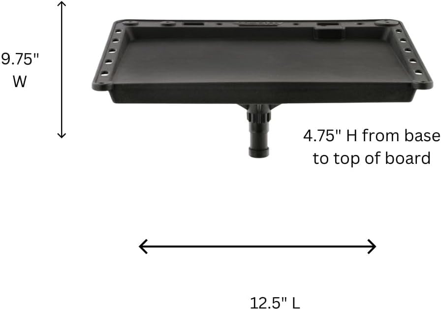 PRODUKTBESCHREIBUNGEN Der Scotty # 455 ist der ultimative Mehrzweck-Arbeitsplatz für alle Ihre Werkzeug-, Ausrüstungs- und Ausrüstungsvorbereitung. Montieren Sie den 455 schnell an unseren Pfostenhalterungen, so dass Sie alle Ihre Angel-Favoriten mit dem integrierten Köder- und Zubehörhalter verstauen können. Schneller und einfacher Zugriff auf alles, was Sie brauchen, ist jetzt bequem griffbereit. Aussenwände ermöglichen es Ihnen, Köder zu schneiden und Köder in einem ordentlichen, geschlossenen Raum vorzubereiten. Halten Sie Messer, Zangen, Hakenschärfer und andere scharfe Gegenstände zwischen der Verwendung für zusätzliche Sicherheit organisiert. Sie können Ihren 455 einfach auf die richtige Höhe und den richtigen Winkel anpassen, indem Sie eine beliebige verstellbare Scotty Verlängerung, wie die 429 Getriebekopfhalterung. Montieren Sie das strapazierfähige Board an Ihrem Kajak mit unserem 453 Gimbal Mount Adapter. Der 455 wird mit einer universellen Pfostensockel geliefert, passend für alle unsere Rutenhalterungen und Adapter. Also gehen Sie voran und beschleunigen Sie die Vorbereitungsarbeit.