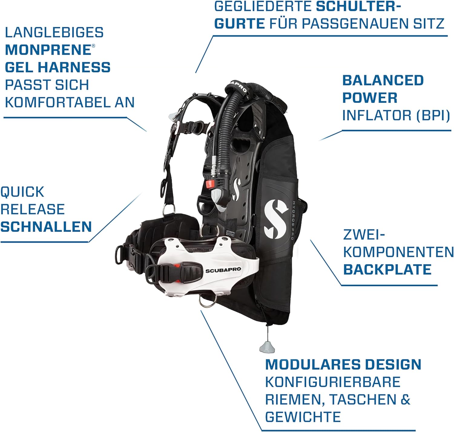 - Automatische Anpassung an die Rückenlänge des Tauchers für ausgezeichneten Komfort und Bewegungsfreiheit