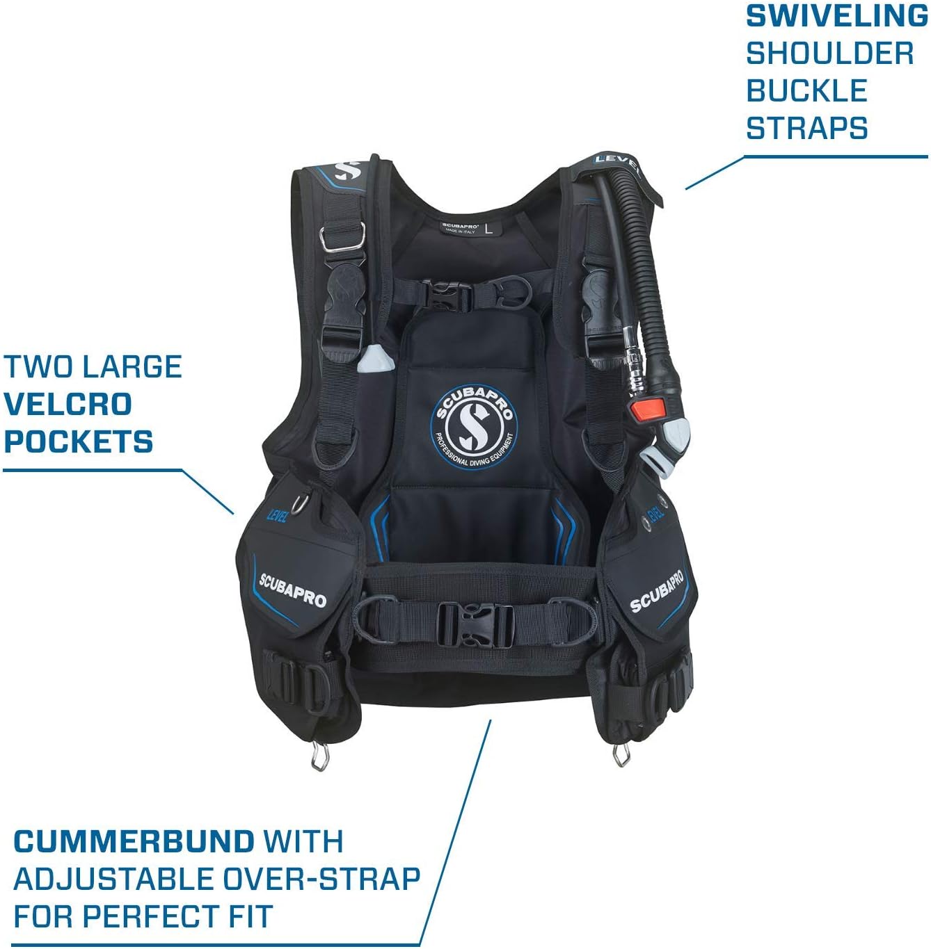 PRODUKTBESCHREIBUNGEN Das neue, vorne einstellbare Tarierjacket LEVEL mit Super-Cinch-Flaschengurt kombiniert die beste Leistung und alle Komfortfunktionen, die du für einen Freizeittauchgang benötigst. Es ist leicht und dennoch extrem robust, und seine Luftblase besteht aus höchst robustem EndurTex 420 Nylon. Was das LEVEL jedoch so einzigartig macht, ist sein Komfort. Schultergurte mit praktischen Drehschnallen, ein Brustgurt und ein verstellbarer Kummerbund mit doppeltem Überziehriemen ermöglichen eine perfekte Passform. Die Blase wurde so entwickelt, dass sie bequem deinen Körper umschliesst, ohne dich einzuschränken. Ein grosses Rückenteil sorgt zusammen mit dem Super-Cinch-Flaschenband für eine maximale Stabilität der Flasche. Das integrierte Gewichtssystem lässt sich einfach bestücken und dank der flachen 40-mm-Schnallen einfach herausnehmen. Zusätzlich enthält das LEVEL zwei grosse Cargo Taschen, von denen eine mit Metallösen für das Anbringen eines Messers ausgestattet ist, vier D-Ringe für das Befestigen von zusätzlicher Ausrüstung und zwei Oktopus-Taschen für das sichere Verstauen eines Oktopus- und Konsolenschlauchs.